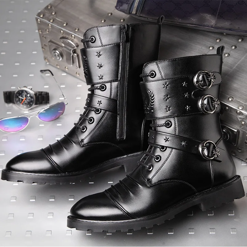 Мужские ботинки Martin, зимние теплые бархатные функциональные металлические высокие велосипедные ботинки, увеличивающая рост обувь, мотоциклетные ботинки черного цвета