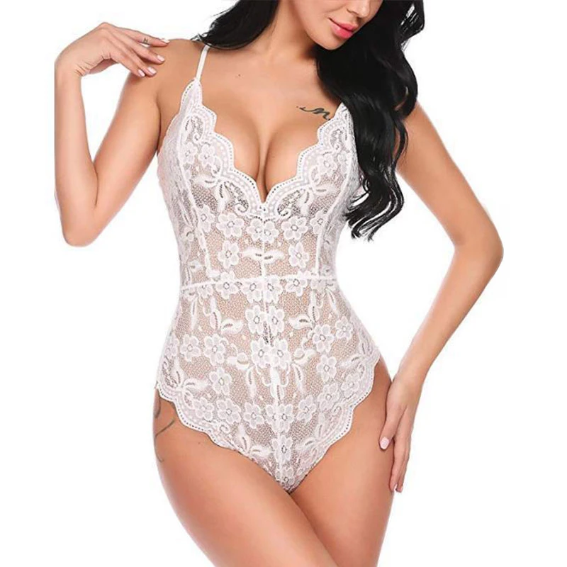 Женская пижама, сексуальное нижнее белье, боди, ночное белье с глубоким V-образным вырезом, кружевная блузка на бретельках, стринги, нижнее белье