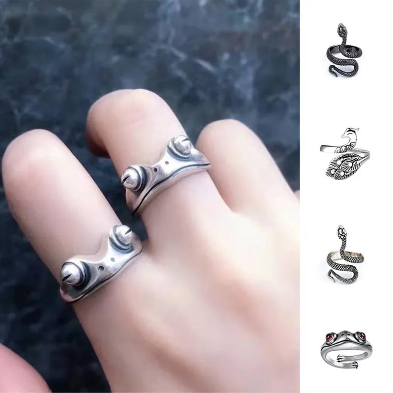 Винтажное кольцо в стиле панк, лягушка, змея для мужчин и женщин, огромное готическое античное кольцо серебряного цвета, модное индивидуальное открытое регулируемое кольцо