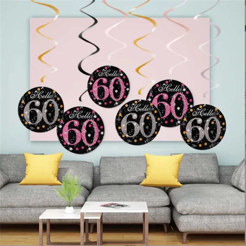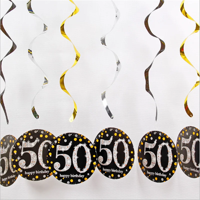 6 шт./упак. спираль 18 21 30 40 50 60 70 80 лет День рождения завитки висячие украшения цвета: черный, золотистый, Серебристый; На день рождения вечерние украшения