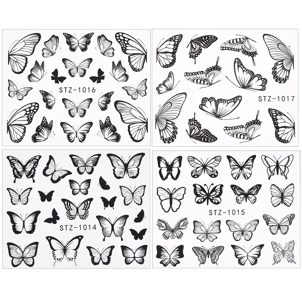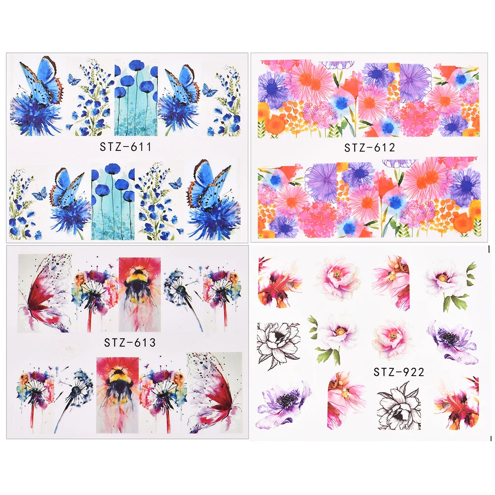 4 шт.компл. наклейки на ногти в виде бабочек, акварельные наклейки, 3D слайдеры с синими цветами, обертывания, маникюр, летнее изображение, сексуальные украшения для дизайна ногтей