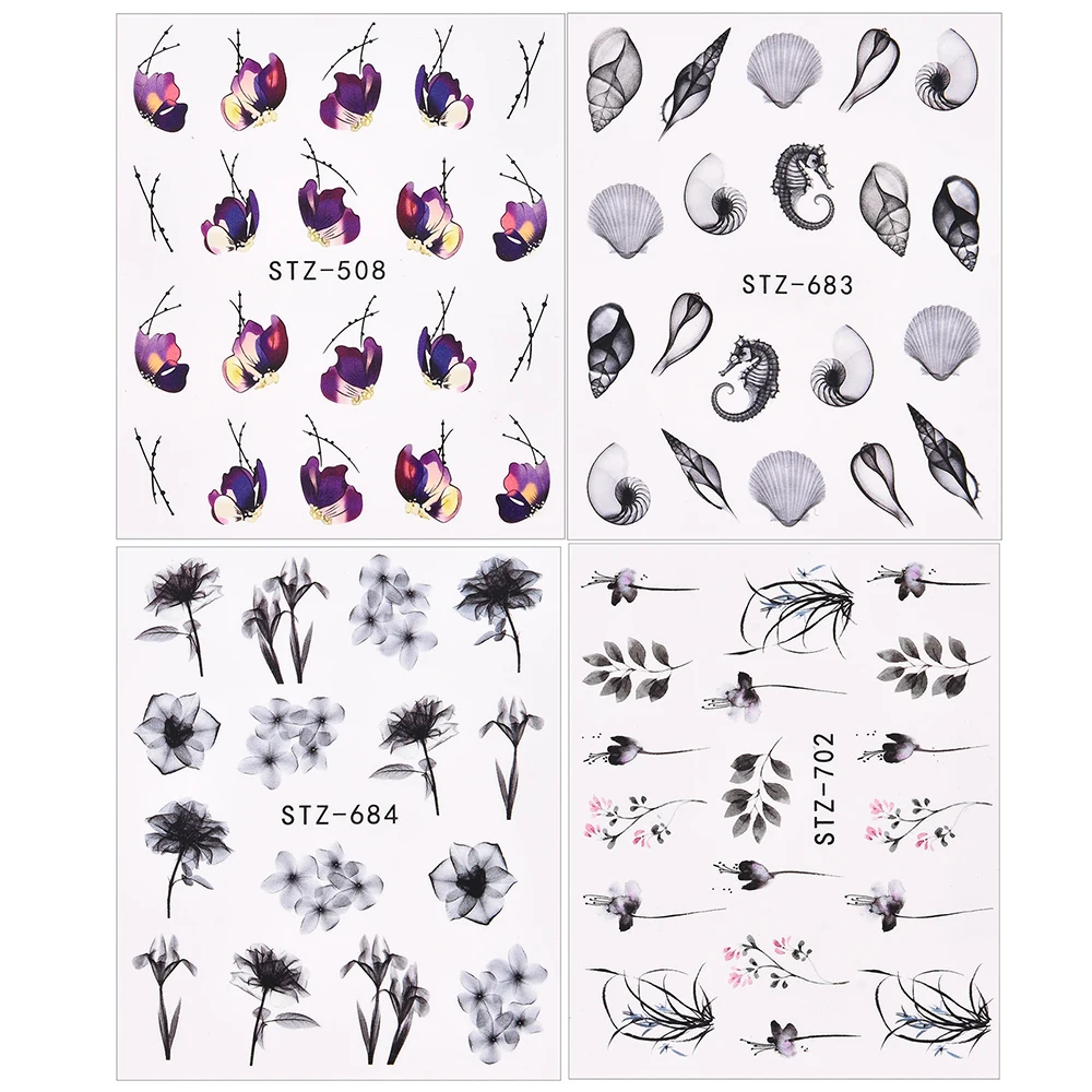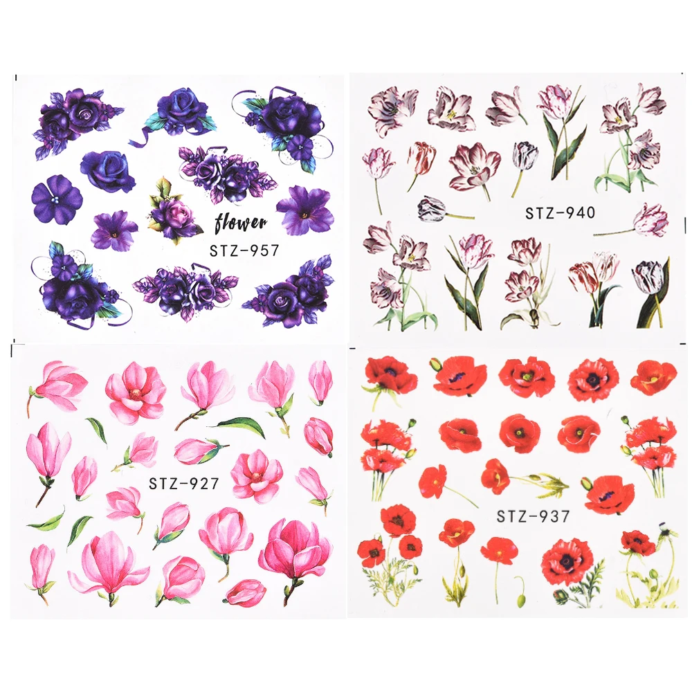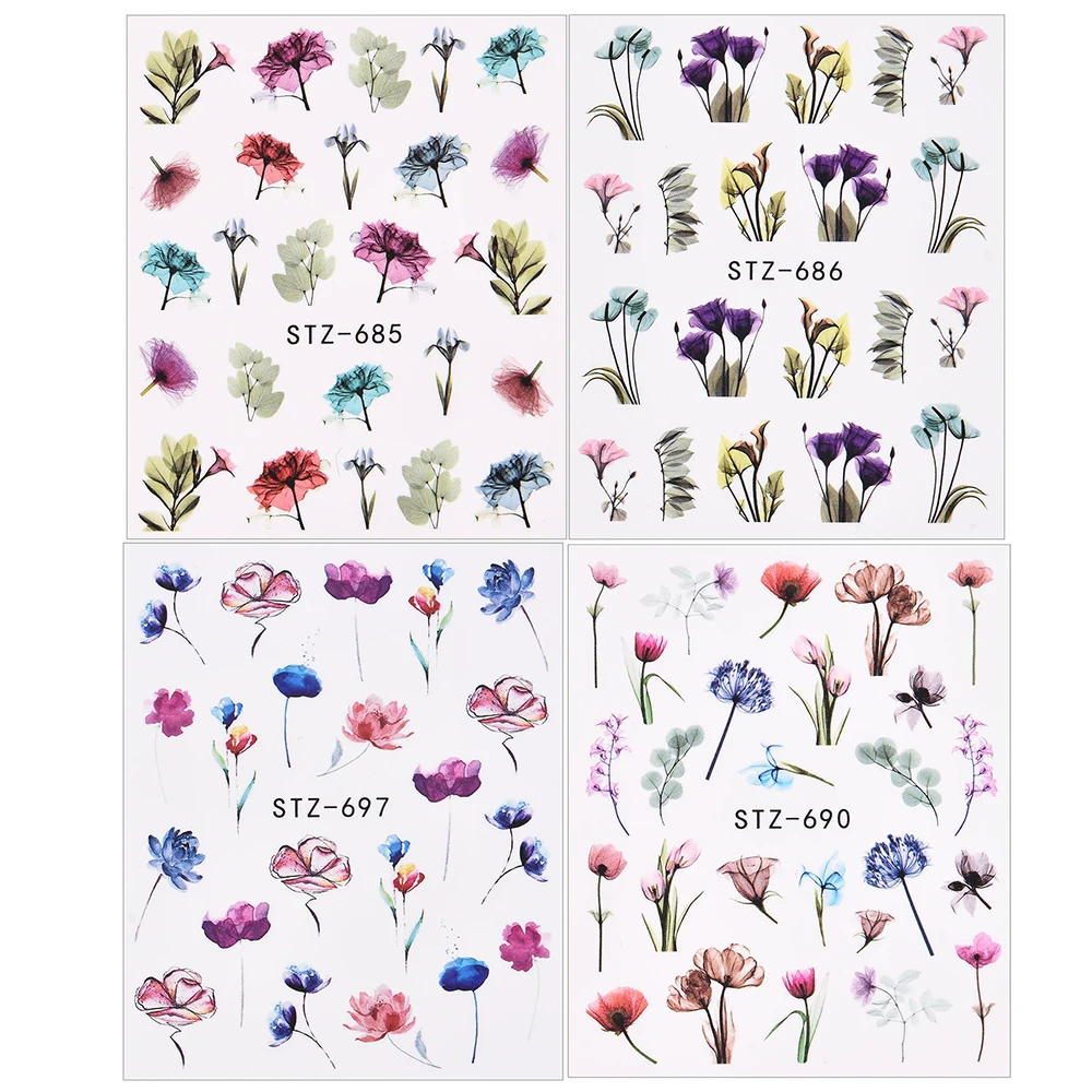 Переводная картинка для ногтей, 1 шт., с цветами, листьями, деревом...