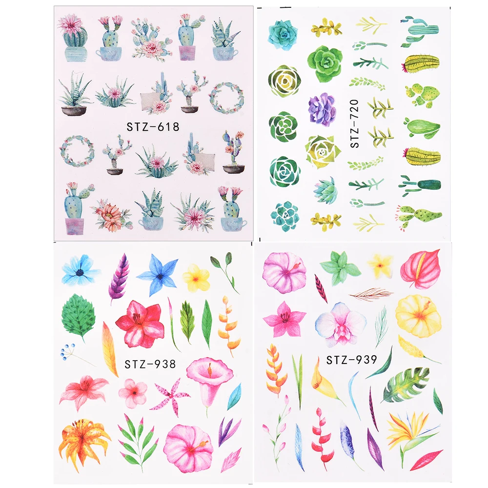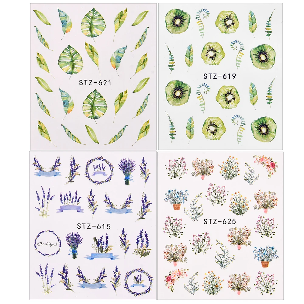 Наклейка для ногтей "сделай сам", с цветами, листьями, деревом, зел...