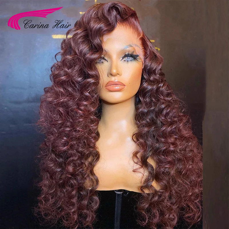 99J бордовый парик Curly13X4, парик на сетке спереди, предварительн...