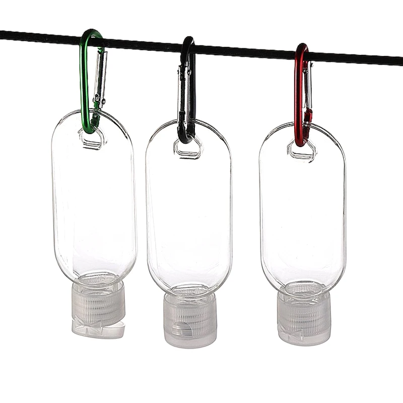 Прозрачная бутылка для макияжа, 20 шт., 30 мл, 50 мл, многоразовая портативная мини-бутылка распыление спирта, дезинфицирующее средство для рук, маленький дорожный держатель, брелок с крючком