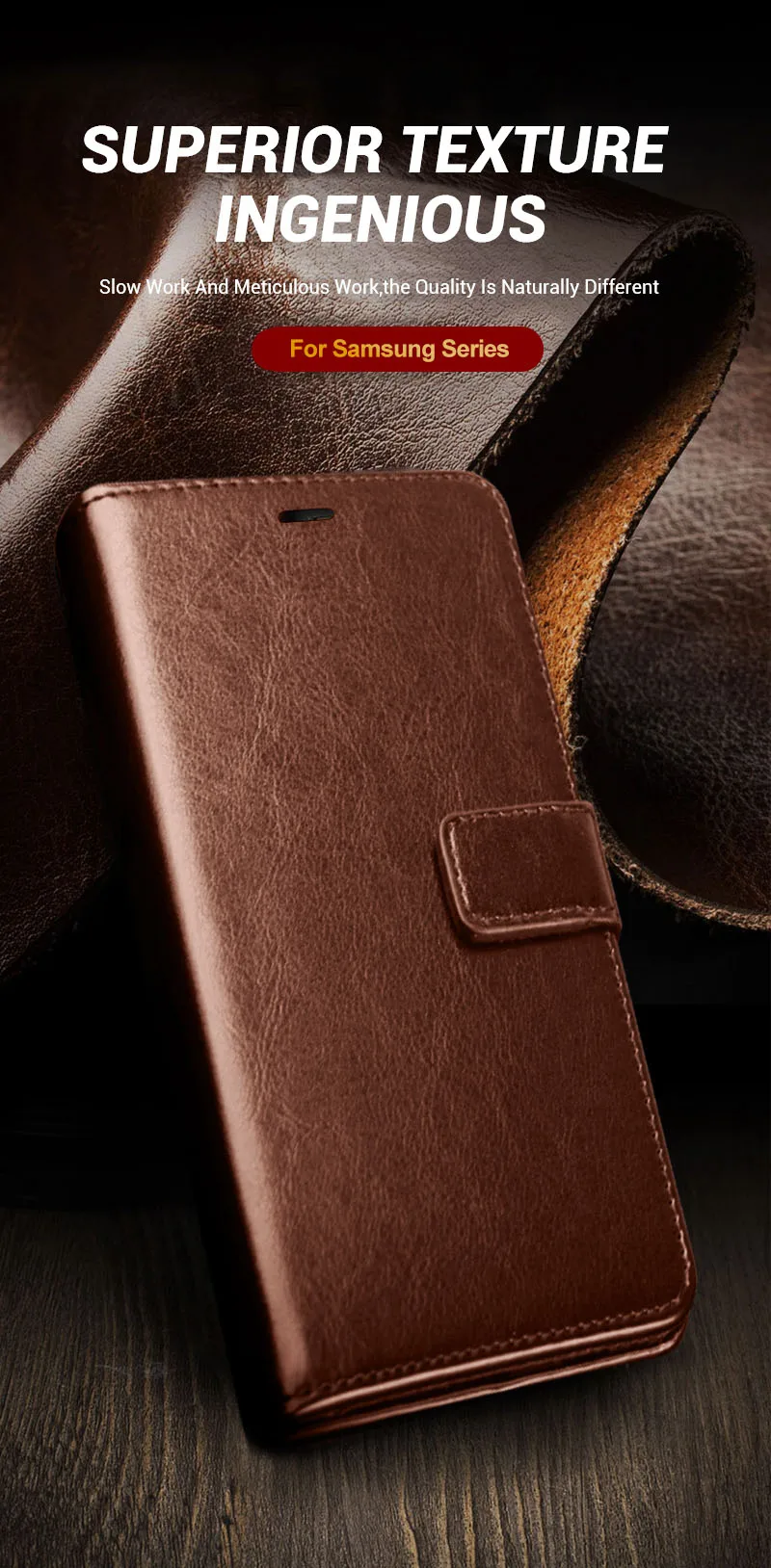 crazy horse grain pattern leather + vertical magnetic flip