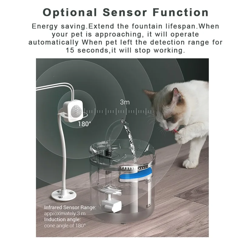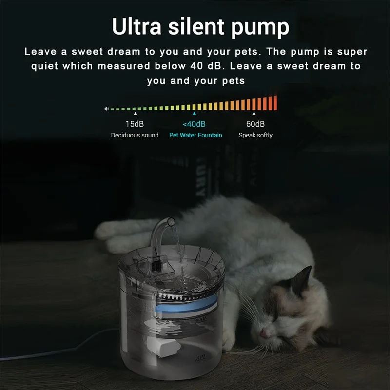 поилка бесшумно работает. датчик движения хорошо реагирует даже за метр. кошка пока сторонится пользоваться)