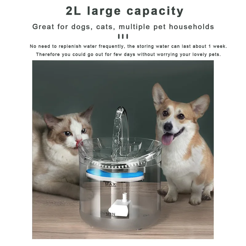 Автоматический питьевой фонтан для кошек, поилка с прозрачным фильтром, 2 л, с краном, для собак