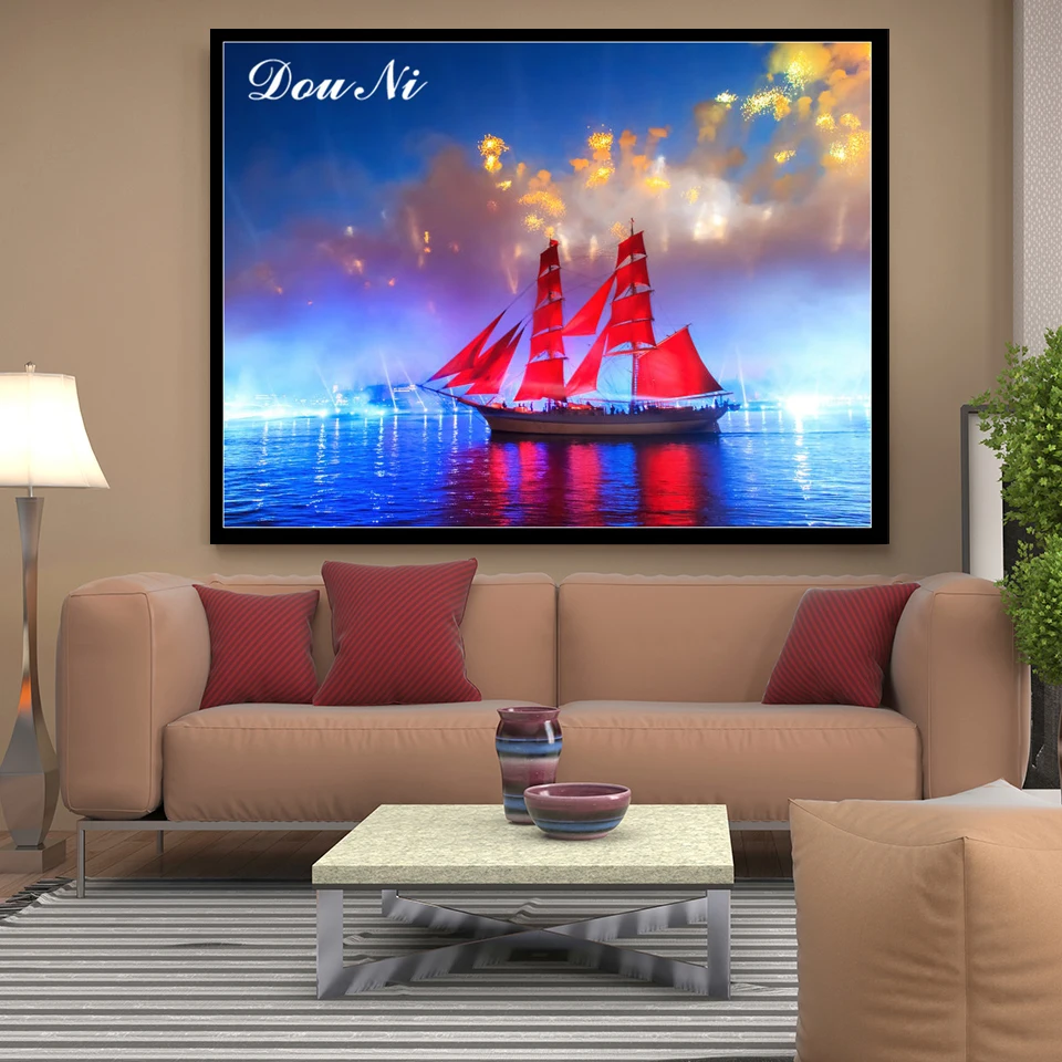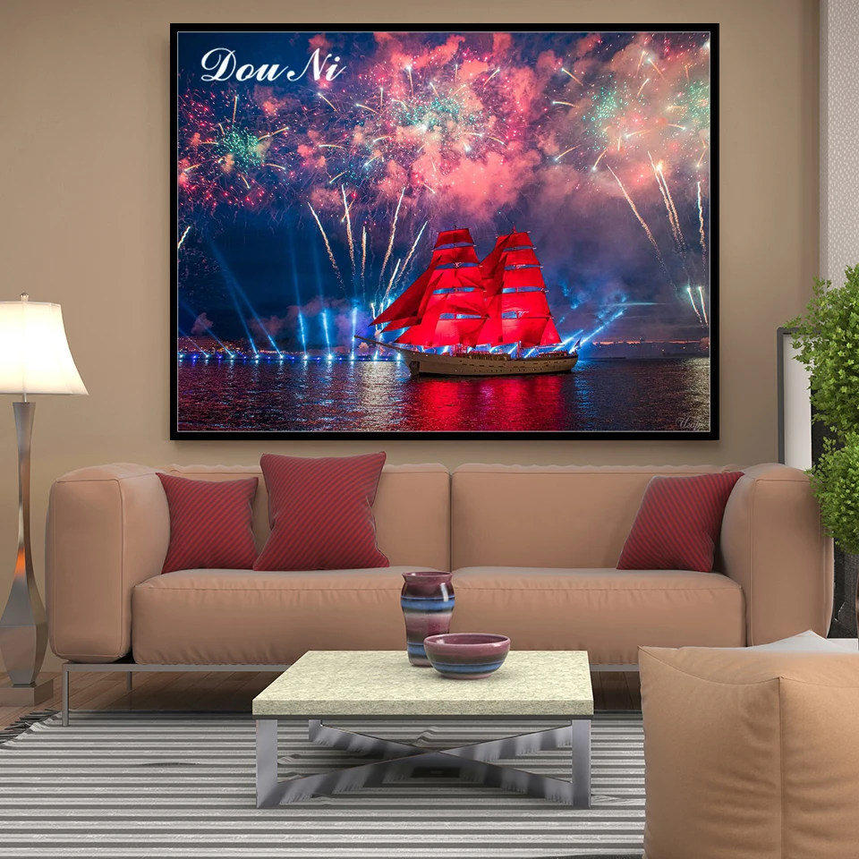 Парусная лодка, алмазная вышивка, полный комплект, фейерверк, лодка, бриллиантовый парус, настенное декорирование, парусная лодка