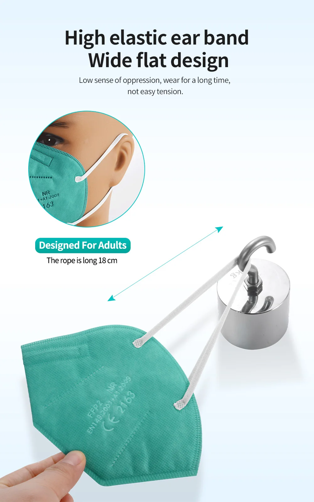 Примечание: маска напечатана "FFP2 NR EN 149:2001 + A1:2009 CE 2163" и предназначена для взрослых