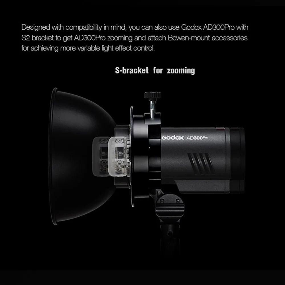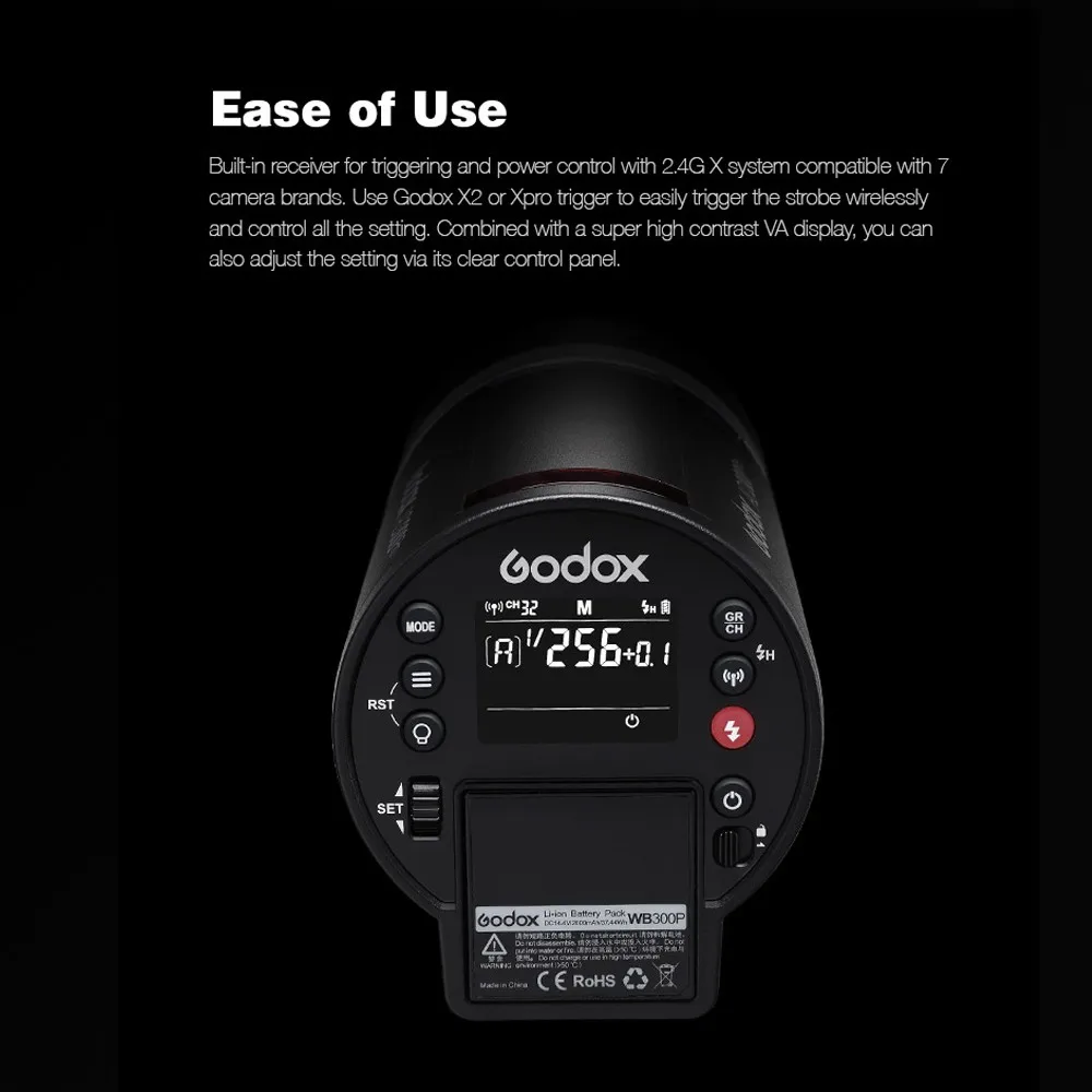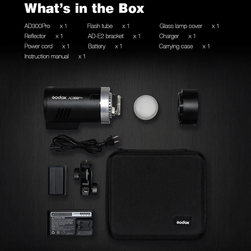 Все-в-одном наружная Вспышка: GODOX AD300Pro наружная вспышка имеет сильную мощность с легким весом, компактным размером и большой портативностью. AD300Pro поддерживает различные аксессуары путем замены различных переходных колец. Ваш процесс съемки станет более гладким с помощью AD300Pro. Легко достичь правильной экспозиции вспышки даже в сложных условиях, меняющих светильник