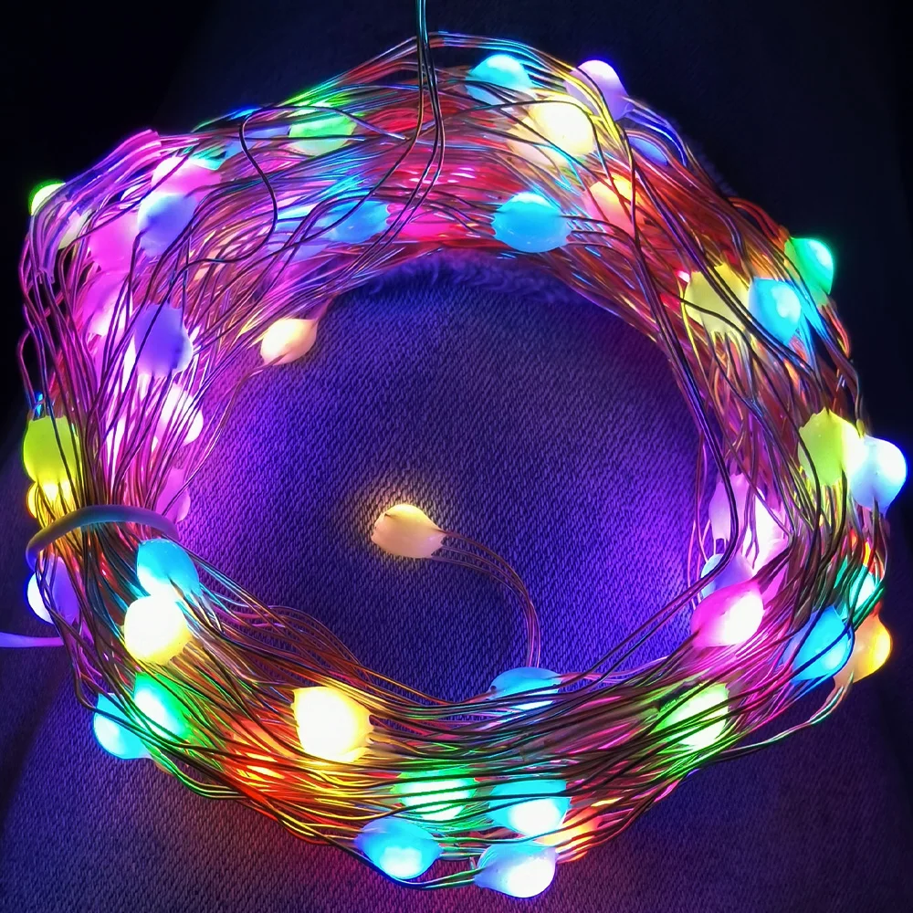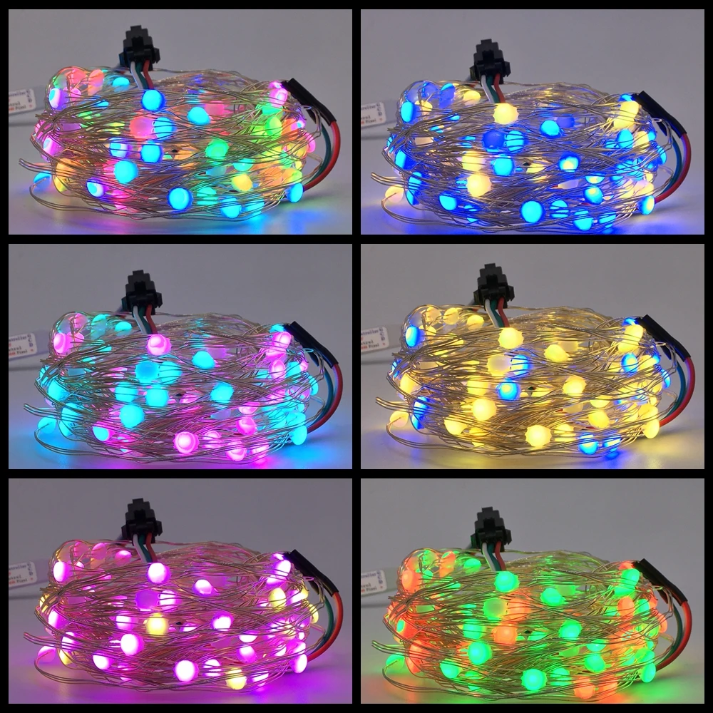 Светодиодная декоративная гирлянда WS2812B RGB с Bluetooth, 5 в пос...