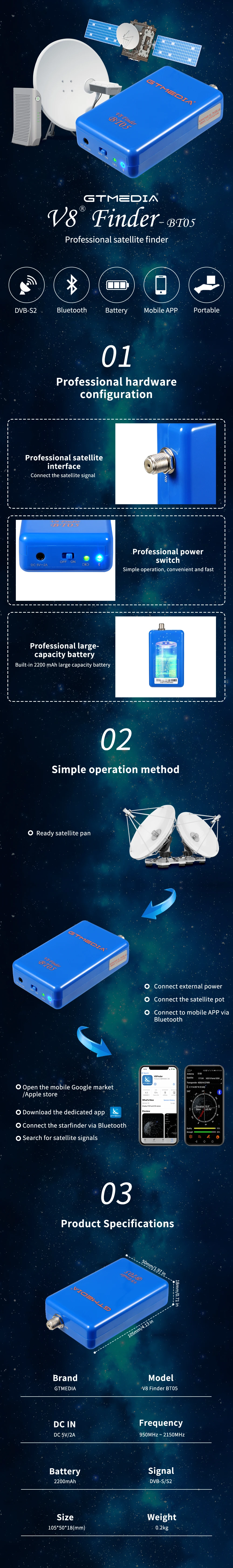 Спутниковый искатель GTMEDIA Satellite v8 Finder BT05, спутниковый ...