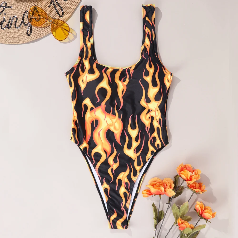 Сексуальный женский купальник Vigorashely 2022 с принтом в виде огня и ремешками, слитный купальник с высокой талией, модель ремень для Монокини, Бразильский купальный костюм