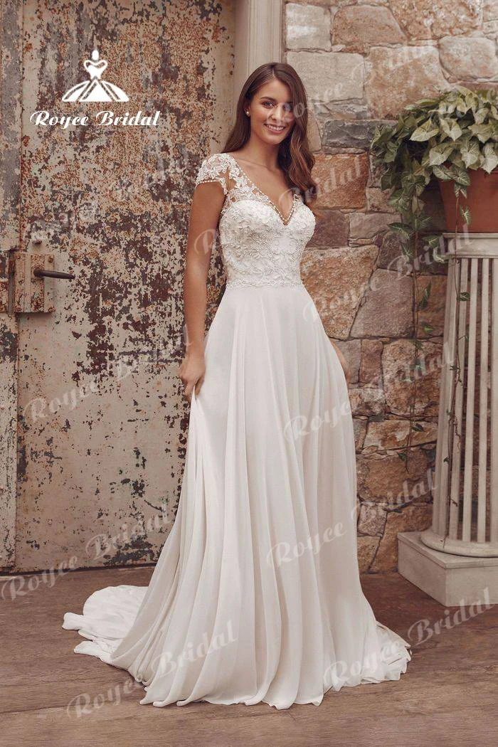 Пляжное шифоновое свадебное платье с рукавом-крылышком и V-образным вырезом, Кружевная аппликация, а-силуэт в стиле бохо, свадебное платье, 2022