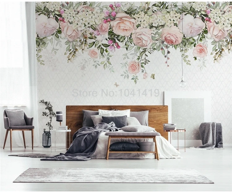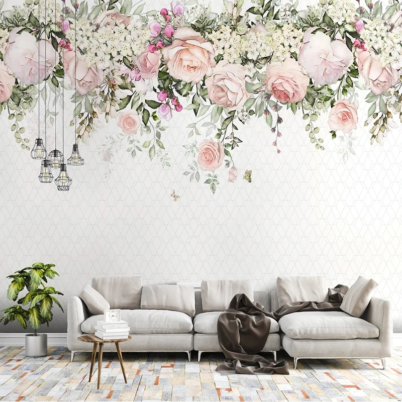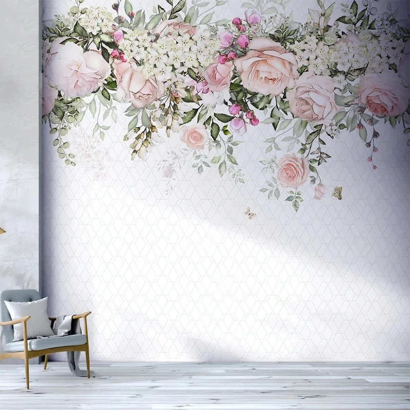 Фотообои на заказ 3D Ручная роспись акварель цветок геометрический фон украшение стены картина Papel де Parede Sala 3 D