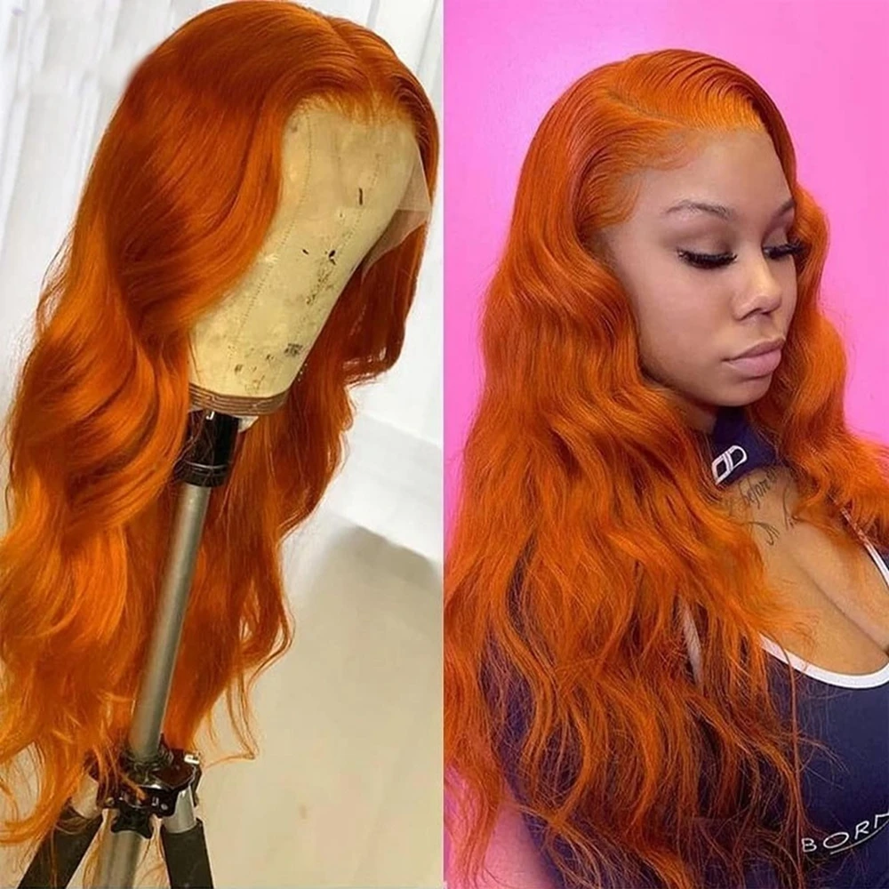Orange red lace front wig