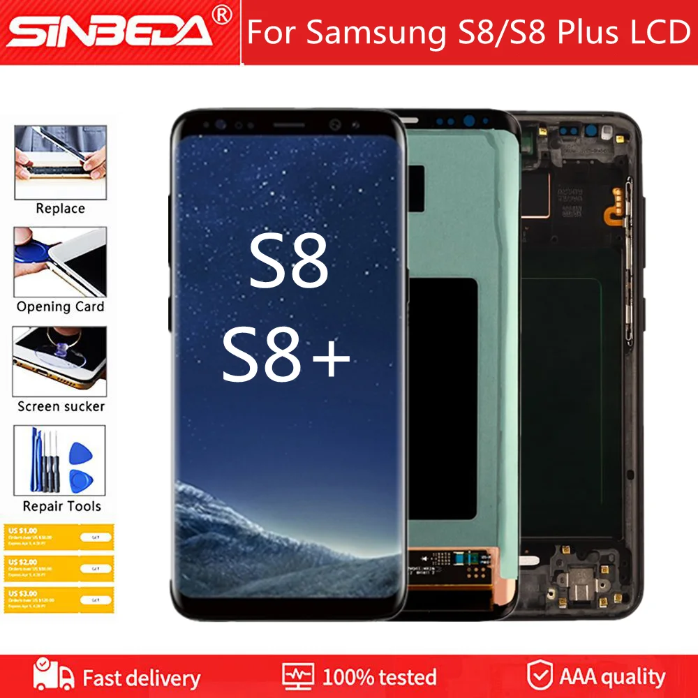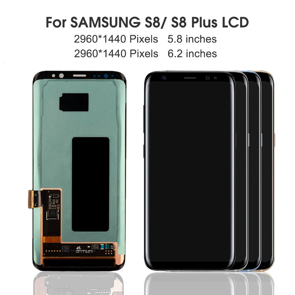 100% супер AMOLED S8 LCD с рамкой для SAMSUNG Galaxy S8 G950 G950F дисплей S8 Plus G955 G955F сенсорный экран дигитайзер сборка