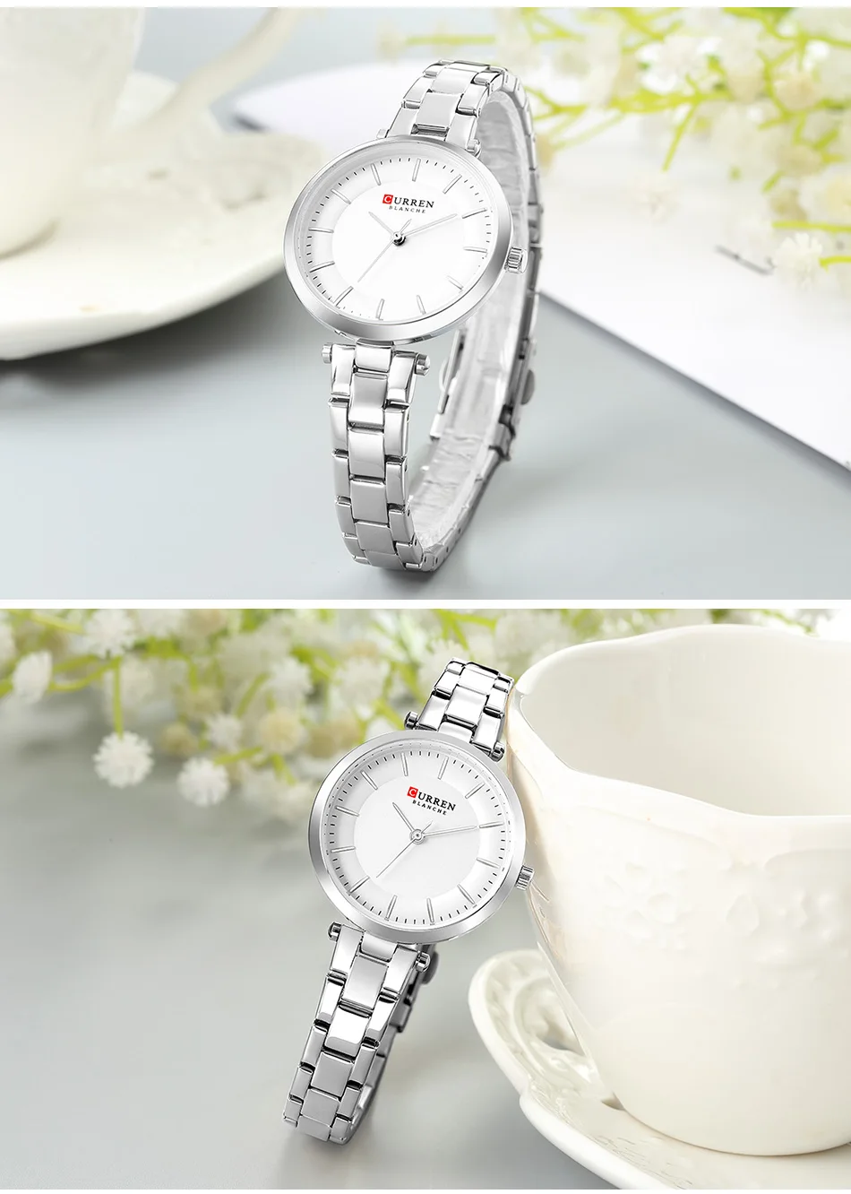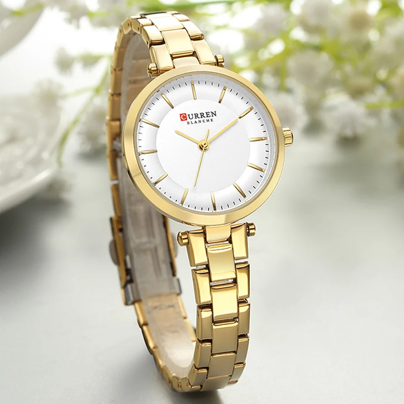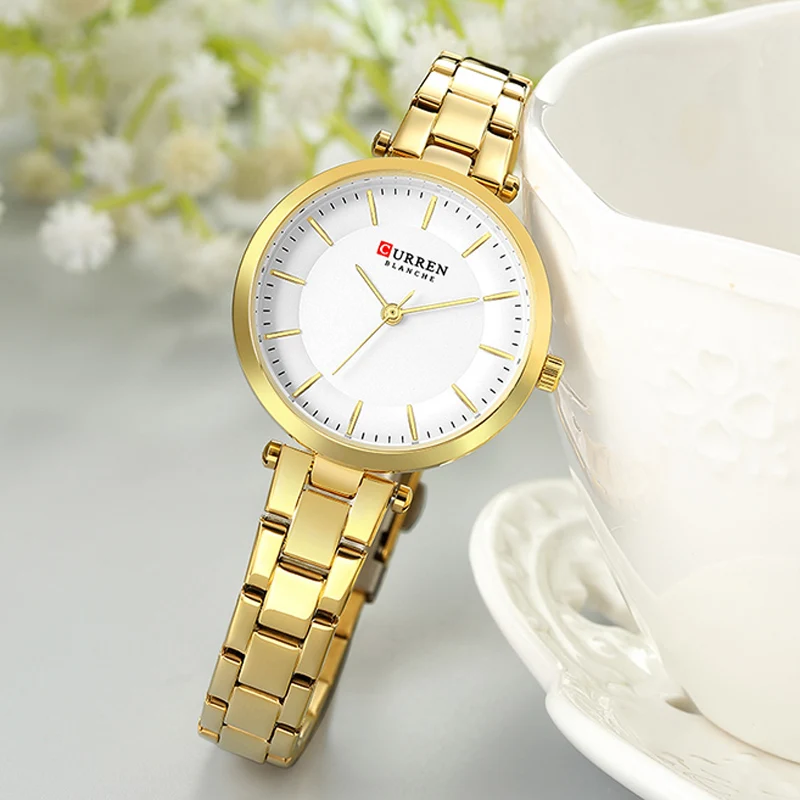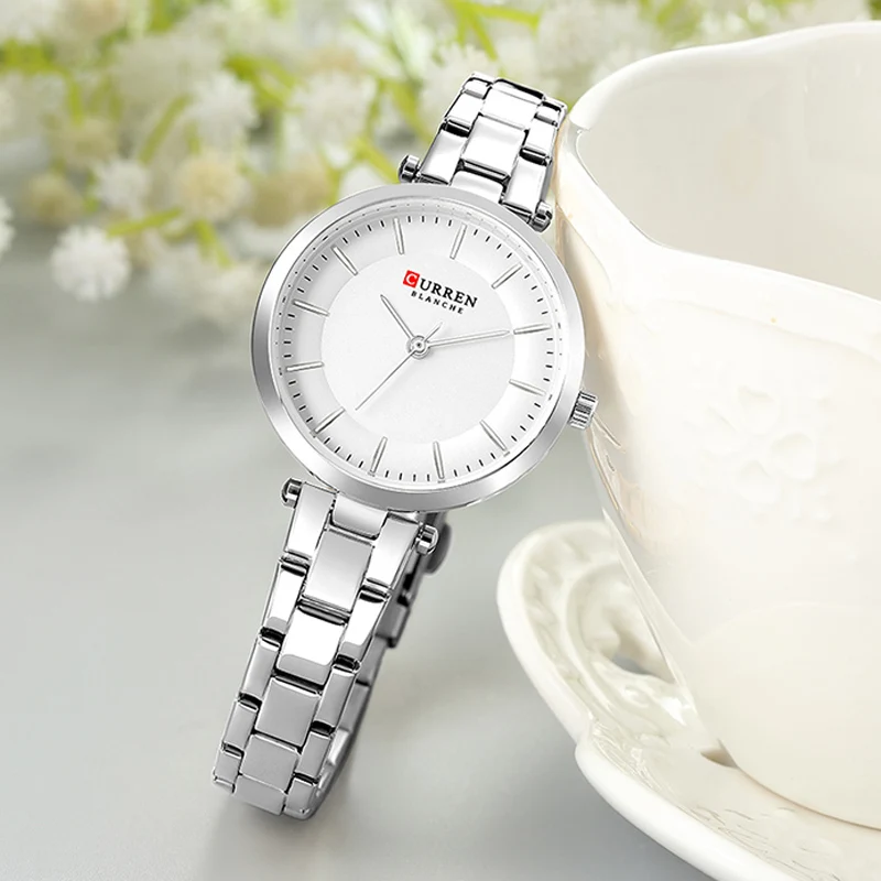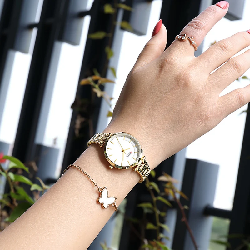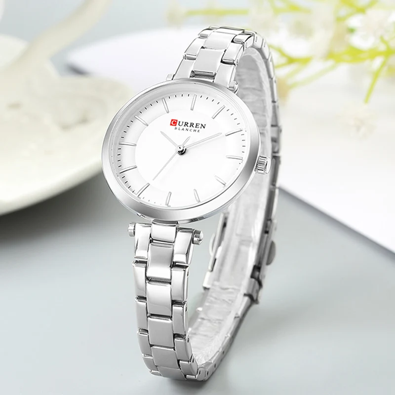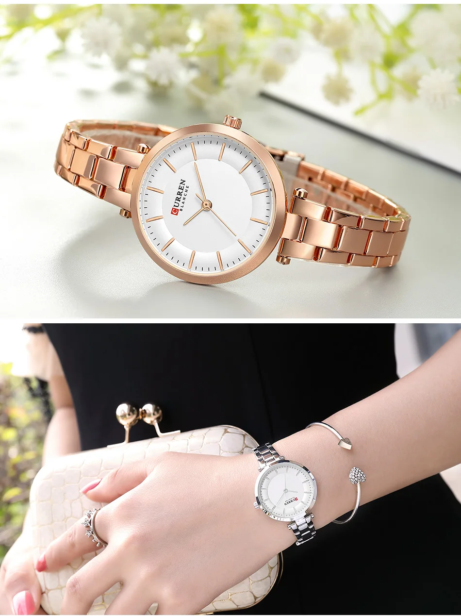 Часы CURREN женские кварцевые, Модные Простые повседневные компактные элегантные брендовые наручные, с браслетом из нержавеющей стали