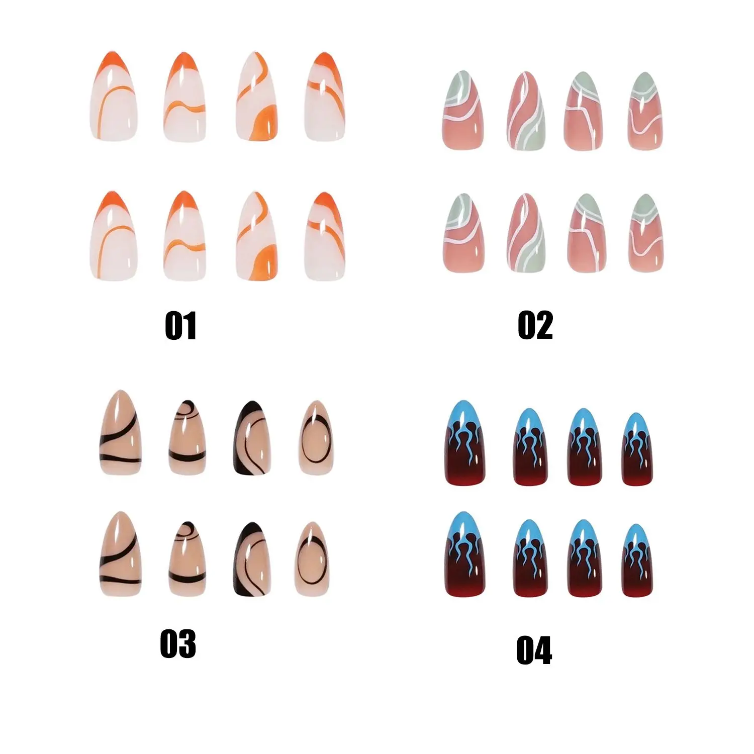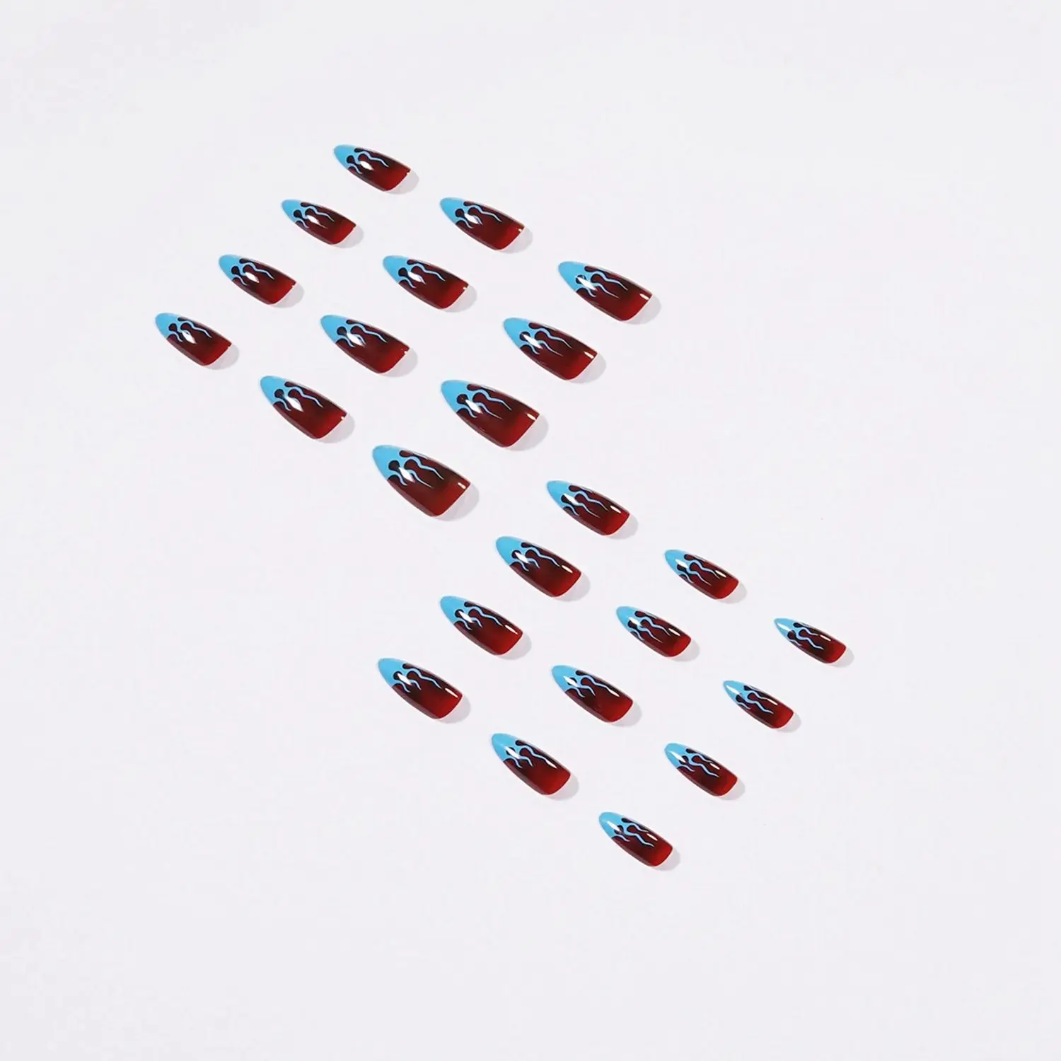 24 шт.коркор. разноцветные накладные ногти с изображением пламениогняленты со съемной миндальной головкой носимые накладные ногти