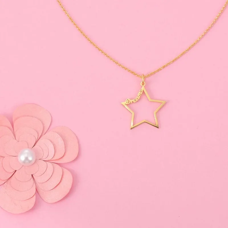 Ожерелье с именем под заказ со звездами, индивидуальное Золотое женское колье из нержавеющей стали под заказ