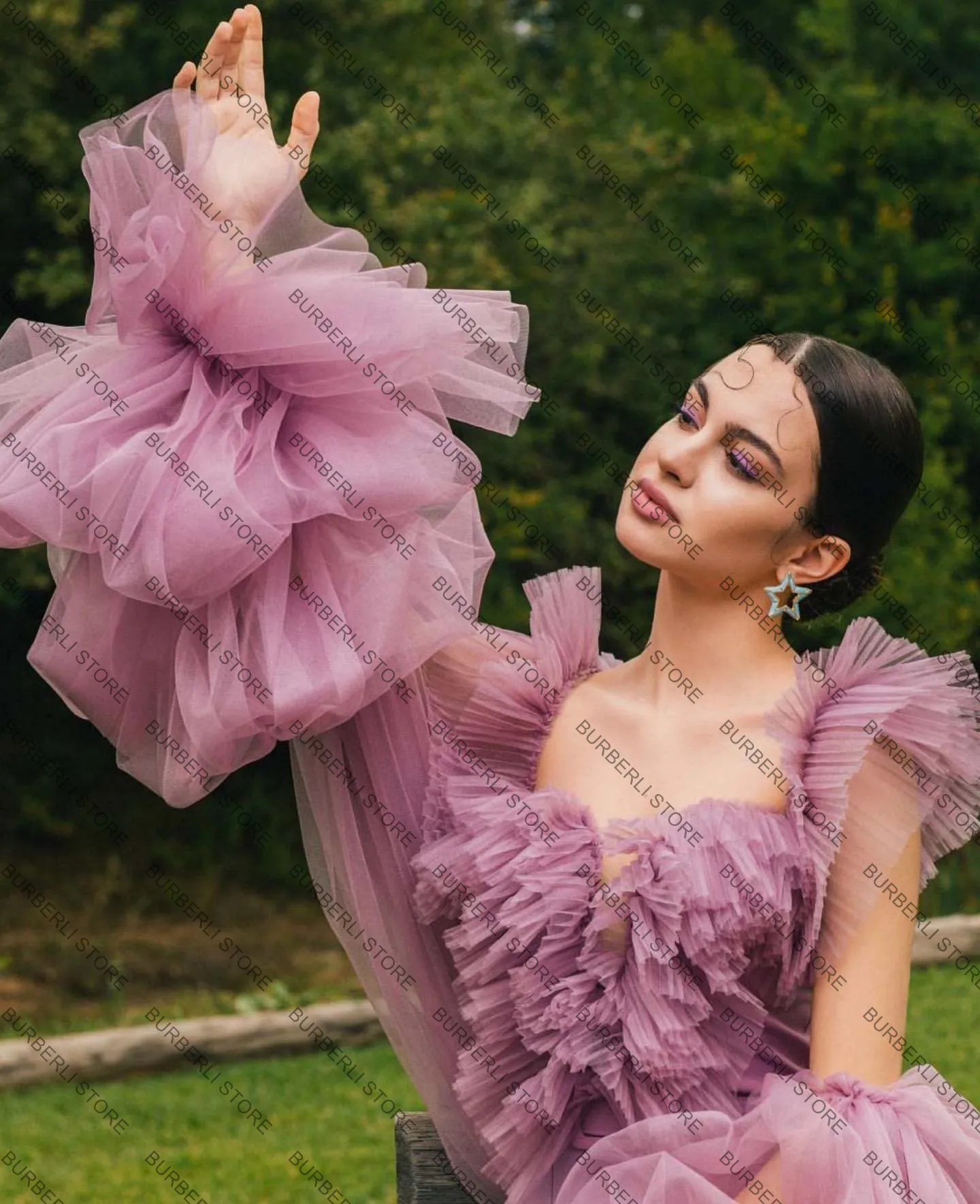Сказочный свет фиолетовый оборки Тюль Топы Женская рубашка блузка с рюшами Длинные рукава сетка квадратный воротник сексуальные женские пышные Топы