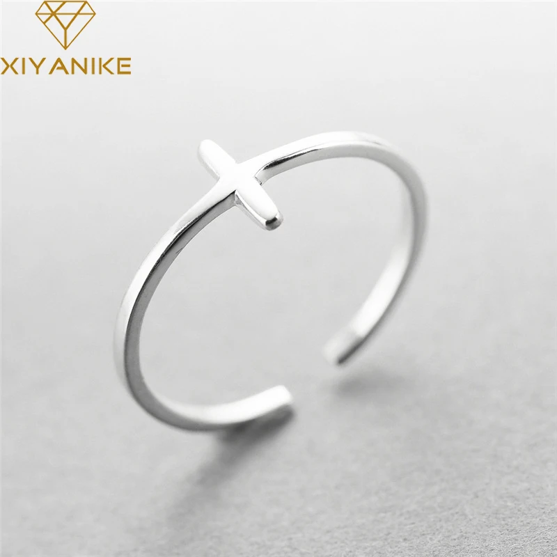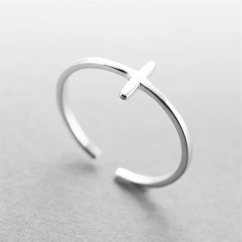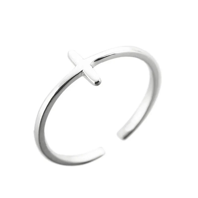 Женское серебряное кольцо с крестиком, Открытое кольцо из серебра 9...