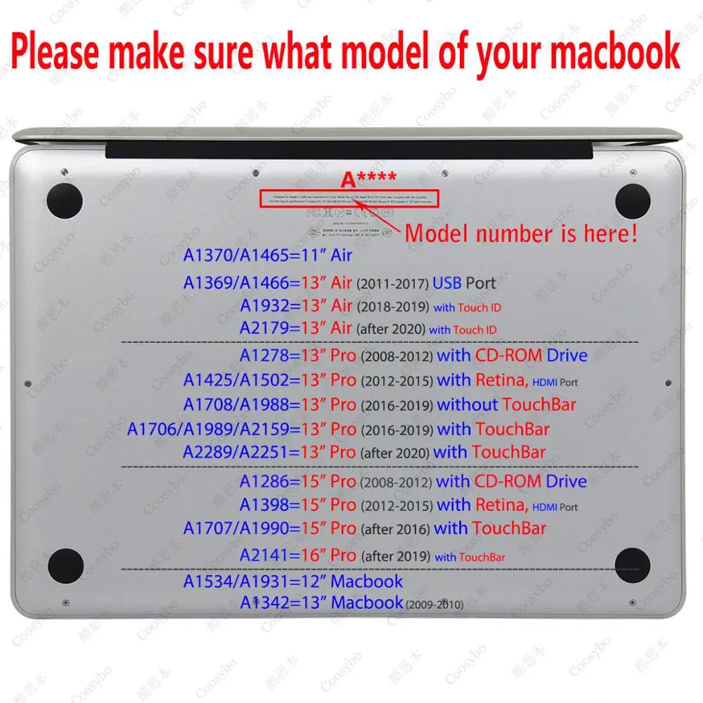5in1 13 "15" Pro Case 12 Macbook 13,3 Air 11 Touchbar 16 "Cover Keyboard for Apple Touchpad Skin Dust Port Screen Protector