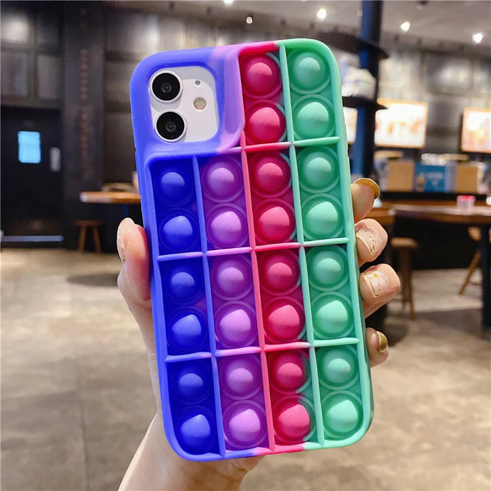 Fidget Toys силиконовый Мобильный телефон, чехол Pop Bubble Push It для iPhone13 Pro Max XS iPhone 12Pro XR 8Plus 6 6S