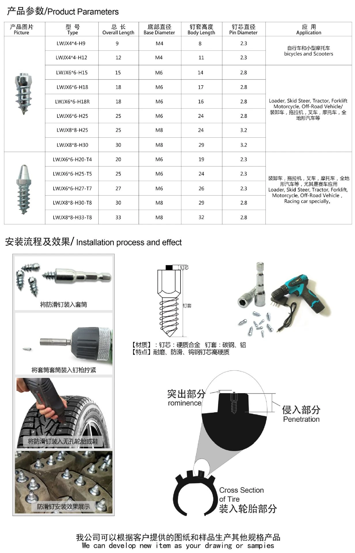 Опишите:Изготовлен из твердого сплава, очень прочный.Легко установить, с определенным сверлом, он может хорошо сочетаться с автомобильными шинами.Он может быть аккуратно удален и сохранен для использования в будущем.Низкое давление на землю, экологически чистое и минимальное воздействие.Он может быть установлен на подошве, чтобы предотвратить скольжение при ходьбе по льду.Подходит для большинства шин, Увеличивает трение для автомобилей, грузовиков, мотоциклов и т. Д., а также повышает экстремальные внедорожные возможности.Спецификация:Название: бутсы для шин на снежной подошвеМатериал: сплавКатегория: ногтиРазмер: около 12 мм и 9 ммПрименение: грузовики, мотоциклы, внедорожные транспортные средства, обувные подошвы и т. Д.