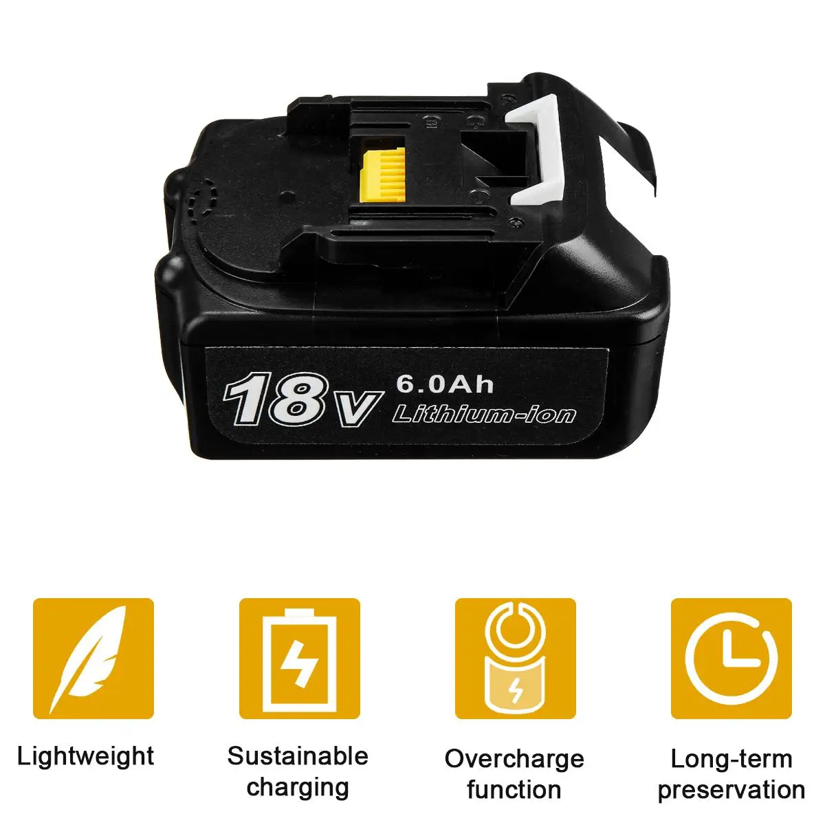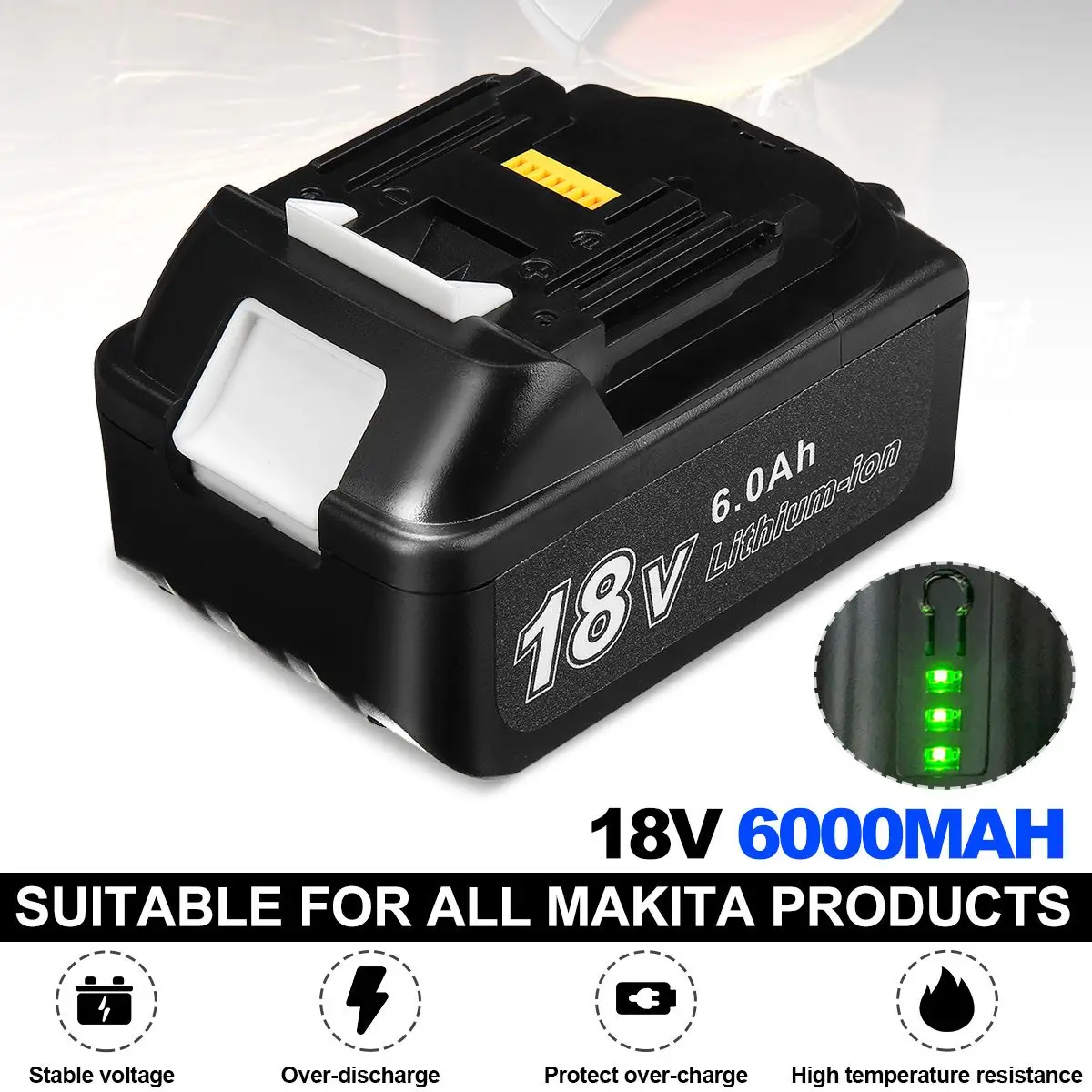 Перезаряжаемый литий-ионный аккумулятор 18 в 6000 Ач для электроинструмента Makita, батареи с интерфейсом мАч, литиевая батарея светодиодный светильник кой