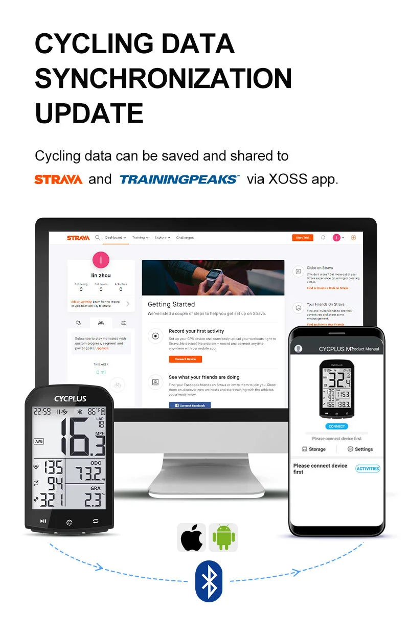 Велокомпьютер CYCPLUS G1, GPS, спидометр, поддержка Xoss ANT + Bluetooth, пульсометр, велосипедные аксессуары