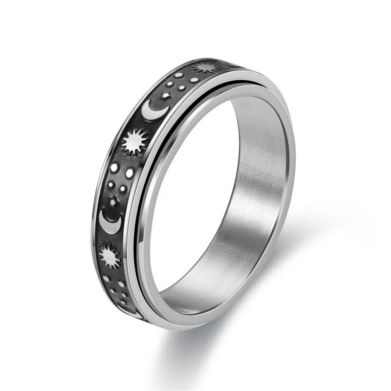 Вращающееся кольцо-Спиннер, луна, солнце, кот, вращающееся кольцо из нержавеющей стали, модное мужское кольцо для снятия стресса