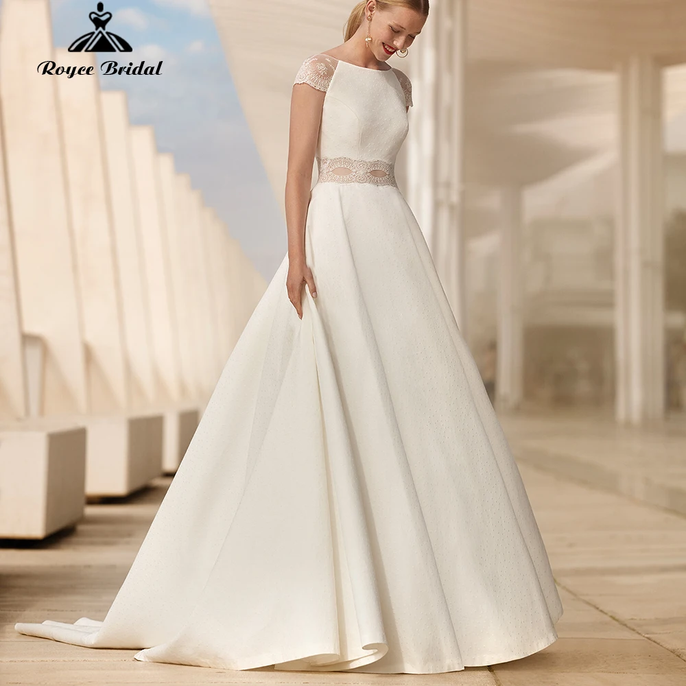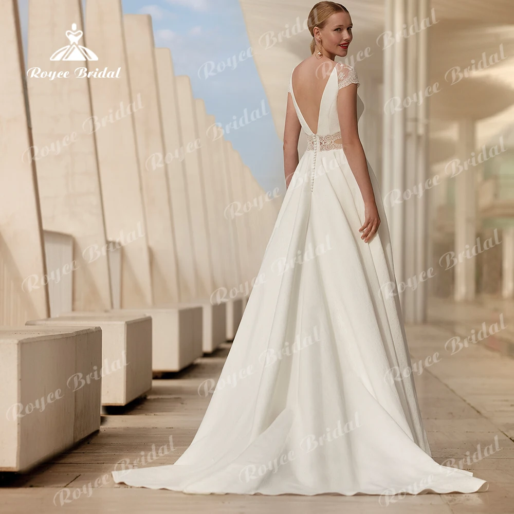 Скромное кружевное атласное свадебное платье-трапеция с аппликацией, женское свадебное платье с v-образным вырезом и коротким рукавом