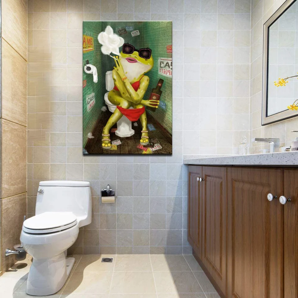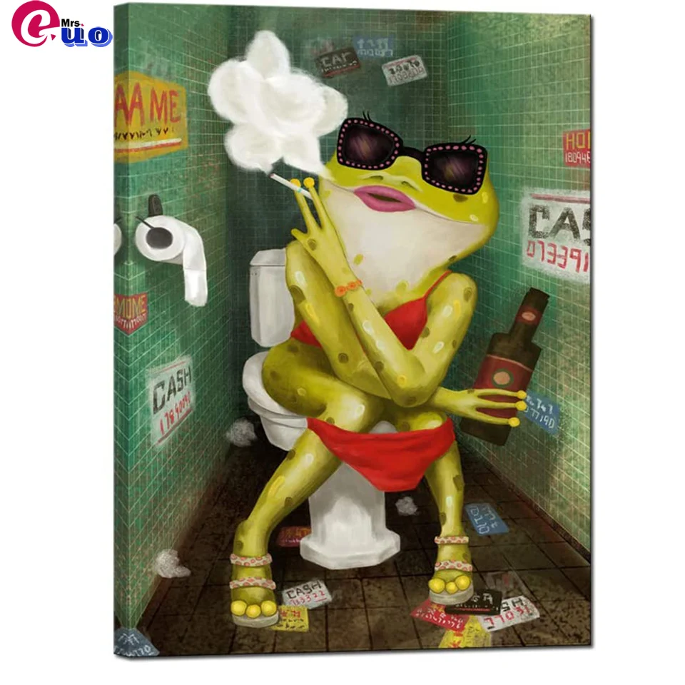 5d Diy наборы для алмазной живописи абстрактная лягушка курить и пить на унитазе, квадратная мозаика, искусство мозаики, смешное настенное искусство для ванной комнаты