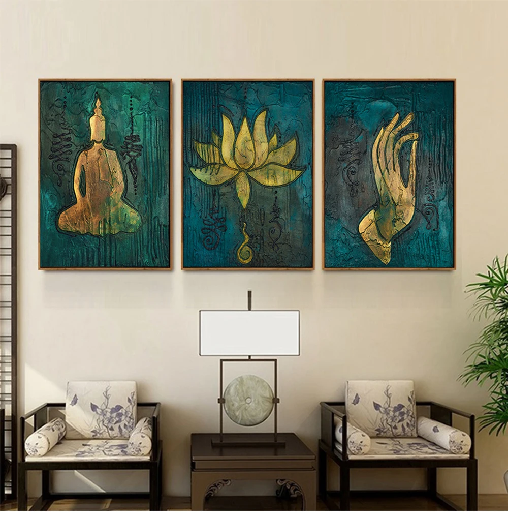 Статуя Будды Лотос винтажные картины на холсте в юго-восточном азиа...