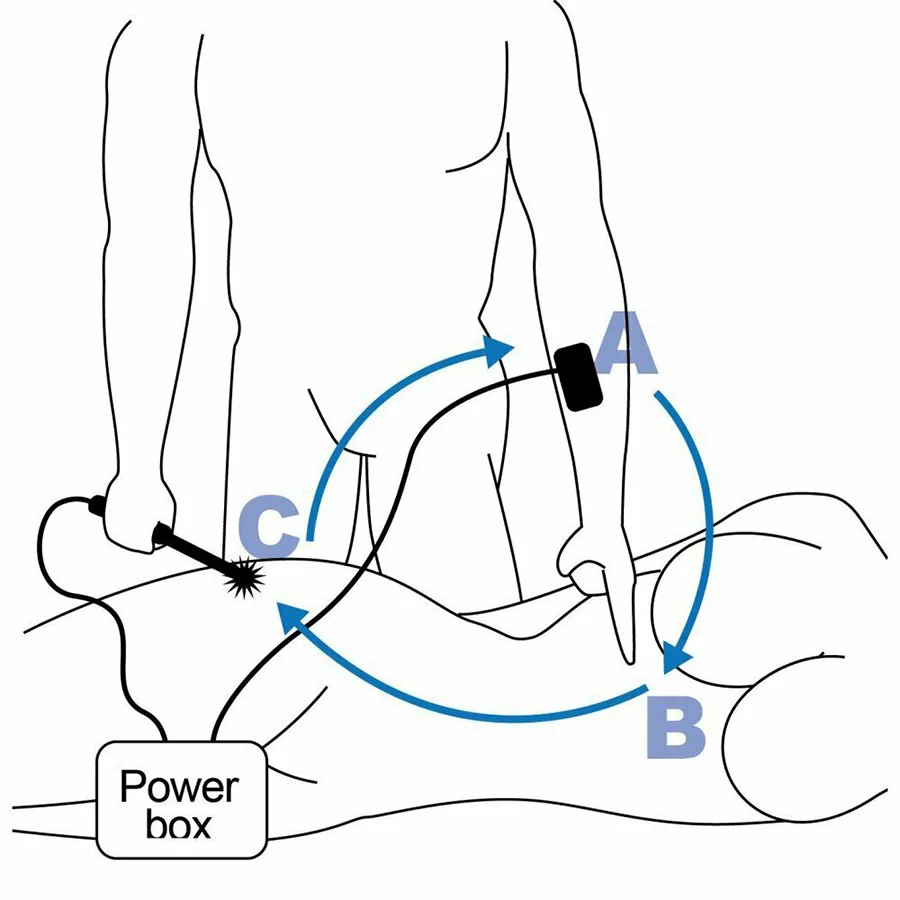 Нажмите «Puise / Numb / Absorb / Auto», чтобы выбрать режим электрошока.