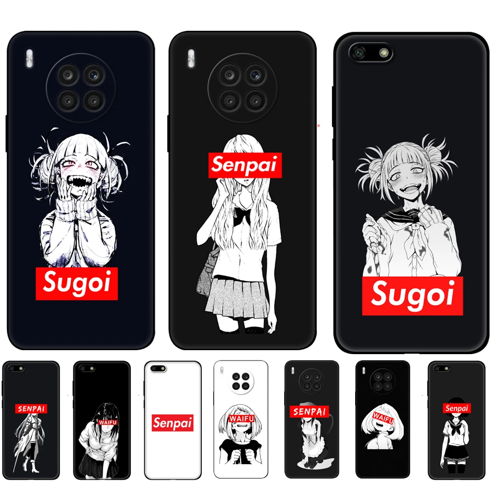 Черный чехол из ТПУ для Huawei Honor 50 Lite PRO, чехол для 20, 10, 10i, 20S, 30S, 30, 7A, 7s, 7C, аниме вайфу, Sugoi Senpai