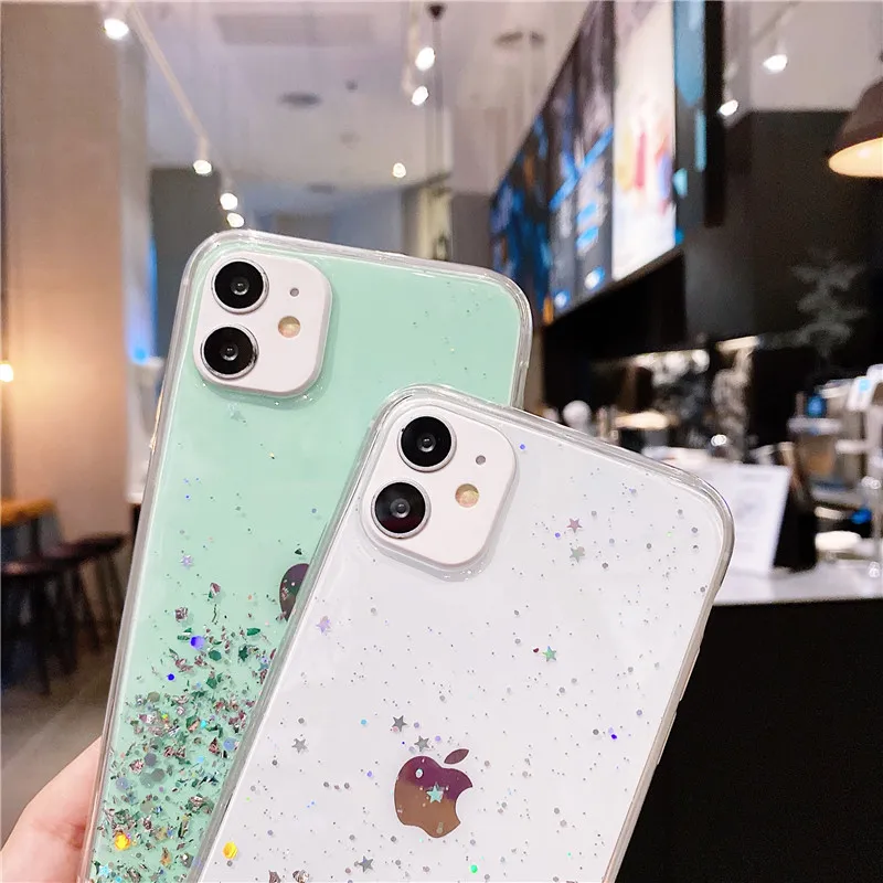 Прозрачный блестящий мягкий чехол для iphone 13, 12 Pro Max, Mini, 11 Pro, Xs, Xr, X, 7, 8 Plus, 6 Se