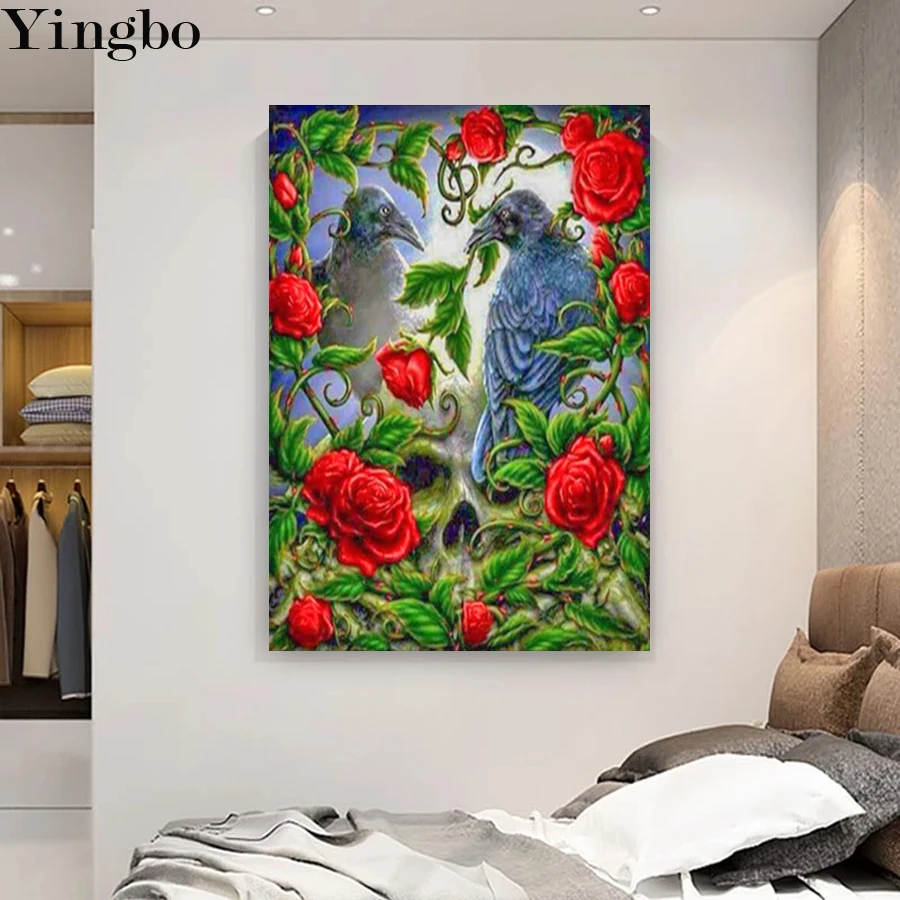 Ворона Роза 5D алмазная живопись Череп Хэллоуин подарок украшение дома DIY бисер вышивка ручная работа художественные картины мозаика подарок