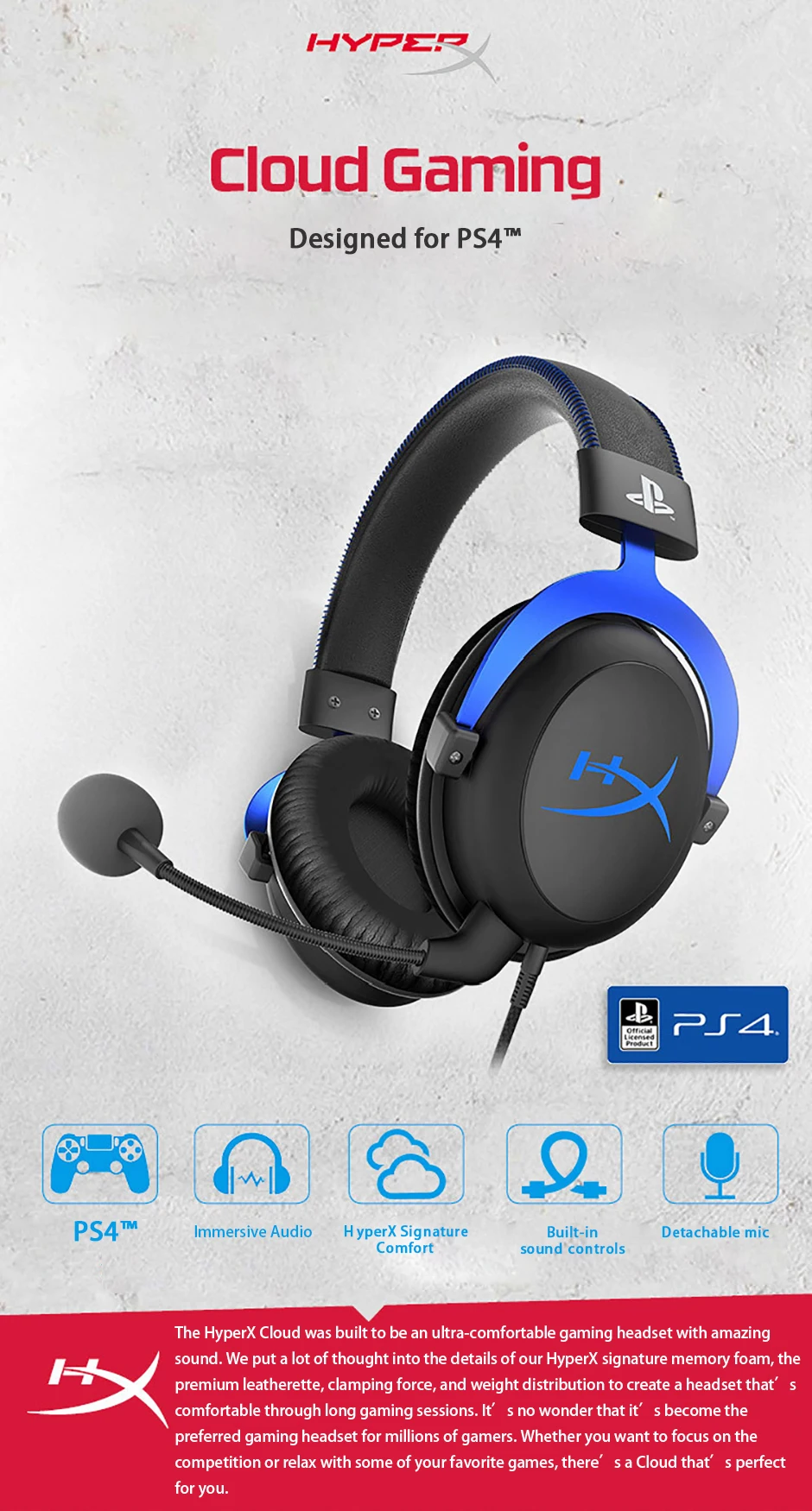 Kingston HyperX Cloud игровая гарнитура проводные наушники с микрофоном Микрофон для PS4™Мобильное устройство для ПК со встроенным звуковым управлением
