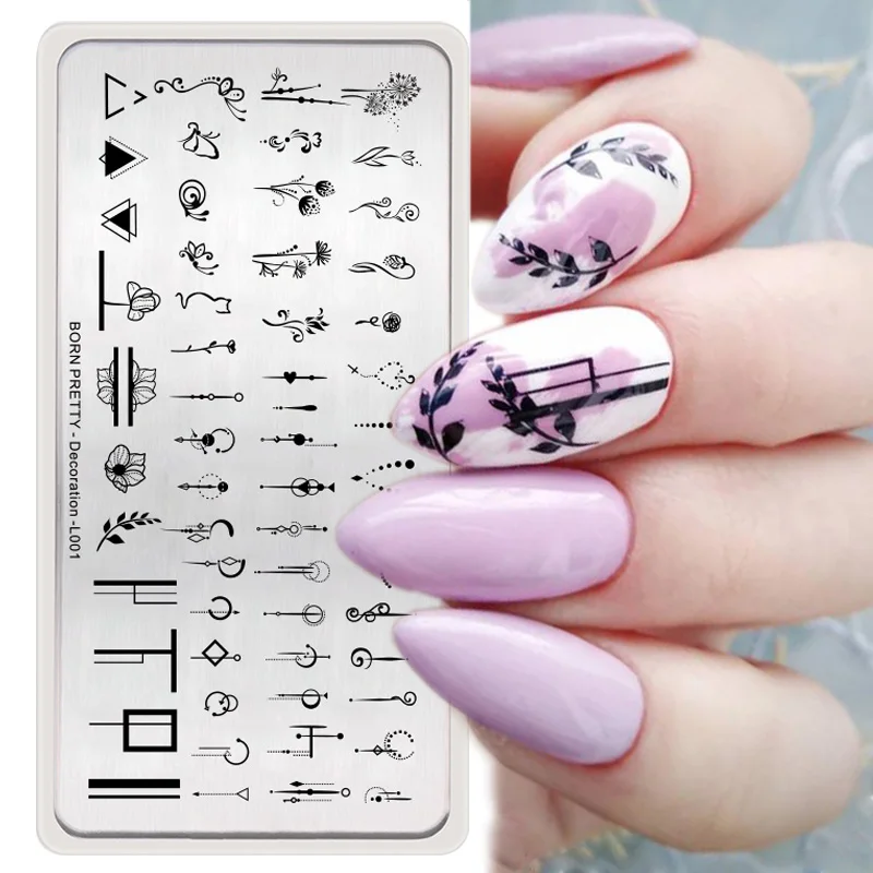 Трафареты для ногтей BORN PRETTY, трафареты для стемпинга ногтей с изображением цветов и листьев, геометрический рисунок, желтоватый шаблон для ногтей