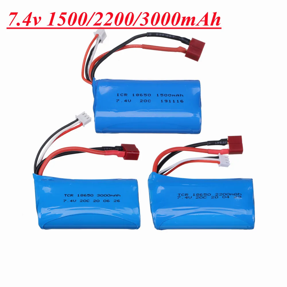 7,4 В 1500 мАч2200 мАч3000 мАч литий-полимерный аккумулятор 18650 для Wltoys 12423 10428 12429 12401 12402 12402A Запчасти для радиоуправляемых автомобилей, грузовиков, лодок, дронов