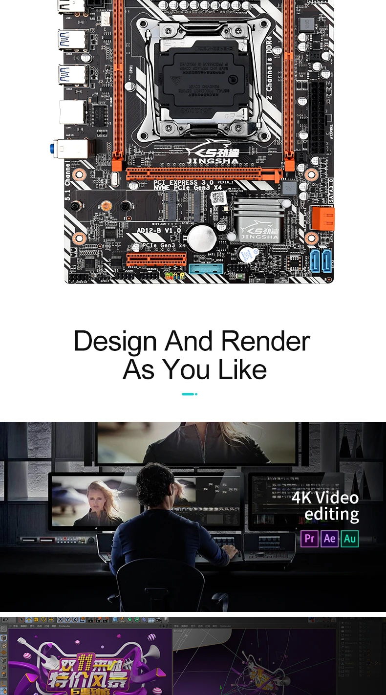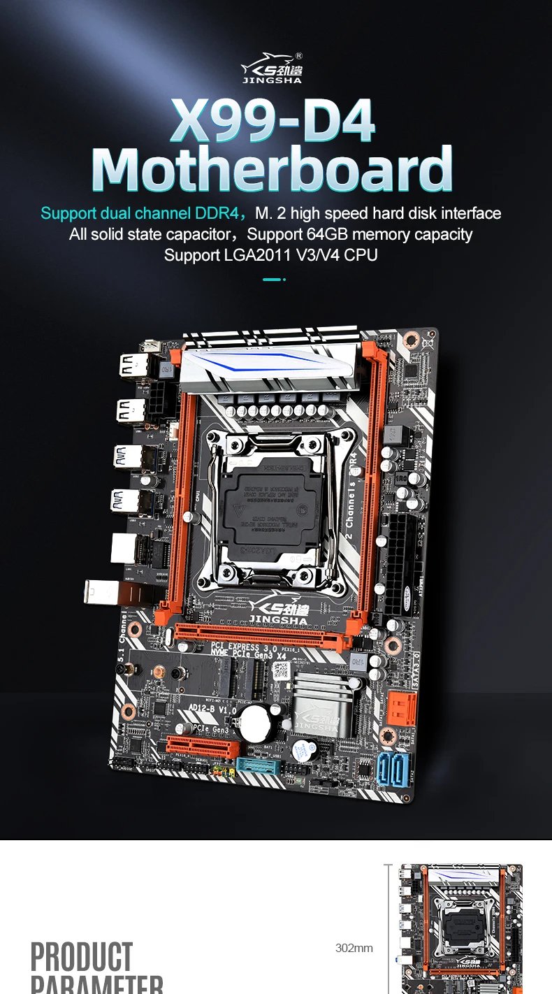 Материнская плата JINGSHA X99 D4, Настольная материнская плата LGA 2011-3 E5 v3v4 ЦП DDR4 ОЗУ до 64 Гб Поддержка NVME M.2 WIFI SATA USB 3,0