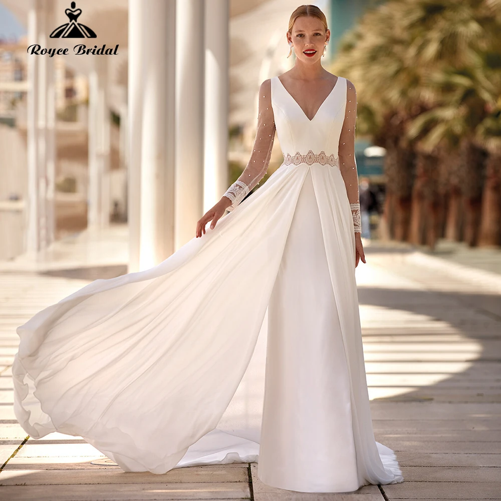 Женское свадебное платье It's yiiya, белое шифоновое платье трапециевидной формы с V-образным вырезом, открытой спиной и шлейфом на лето