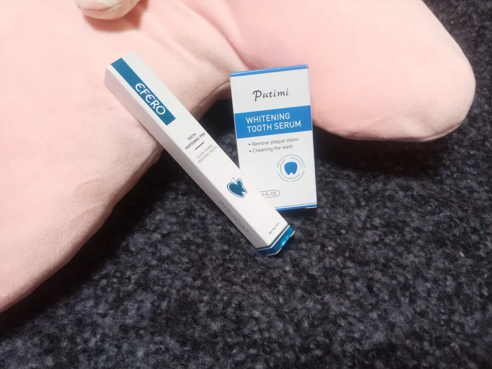 Набор для отбеливания зубов от PUTIMI Official Store. Посылка приехала в Беларусь за 20 дней. Средства были упакованы в фирменные коробочки, которые были запечатаны в слюду. На коробочках имеется вся информация и срок годности. В комплект входят: зубная сыворотка объёмом 10 мл. и карандаш, объёмом 5 мл. Хороший вариант для домашнего отбеливания зубов. Гигиенические средства помогут быстро избавиться от тёмного налёта в домашних условиях. Удобная форма и небольшой размер, можно брать с собой в путешествия и на работу. Простое нанесение - без массивных кап. И быстрый результат - процедура осветления занимает 15-20 мин., цвет зубов меняется на несколько тонов. Эффект отбеливания пару дней. Но если пройти курсом, эффект будет подольше. Сама процедура отбеливания - безболезненна.