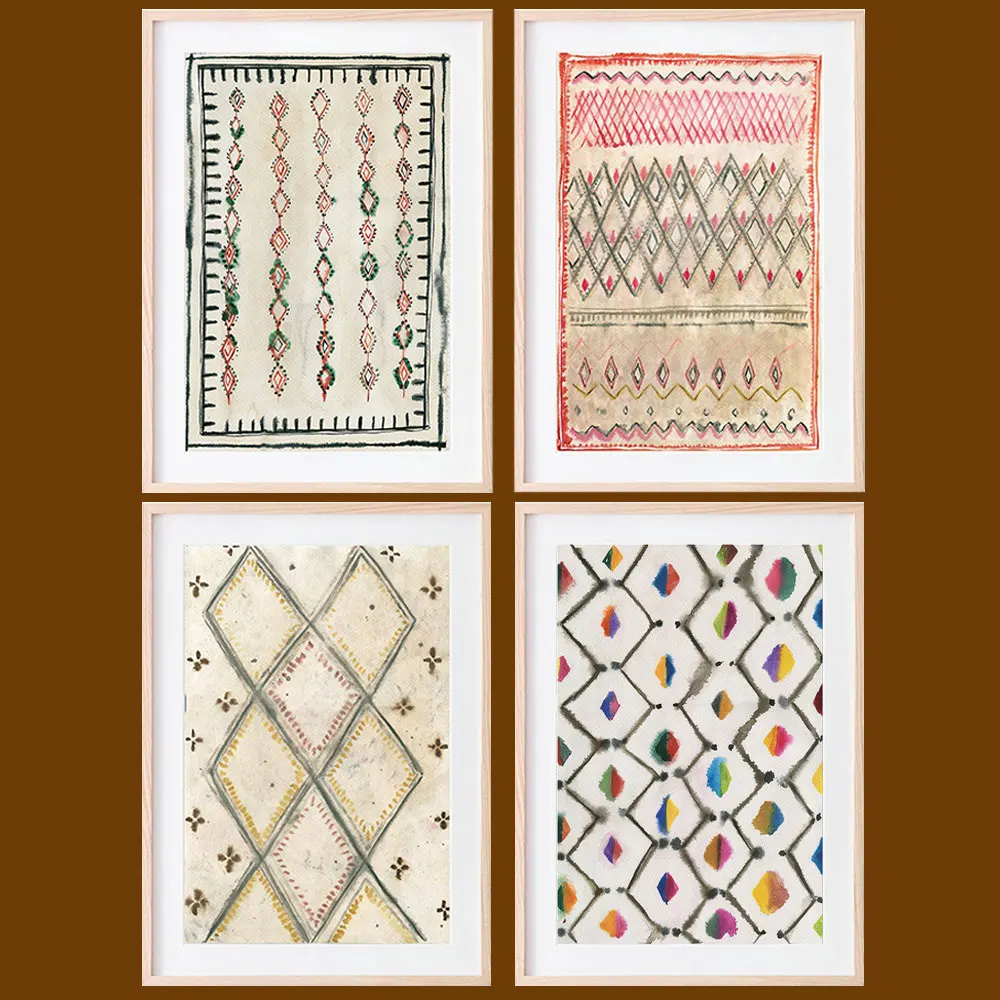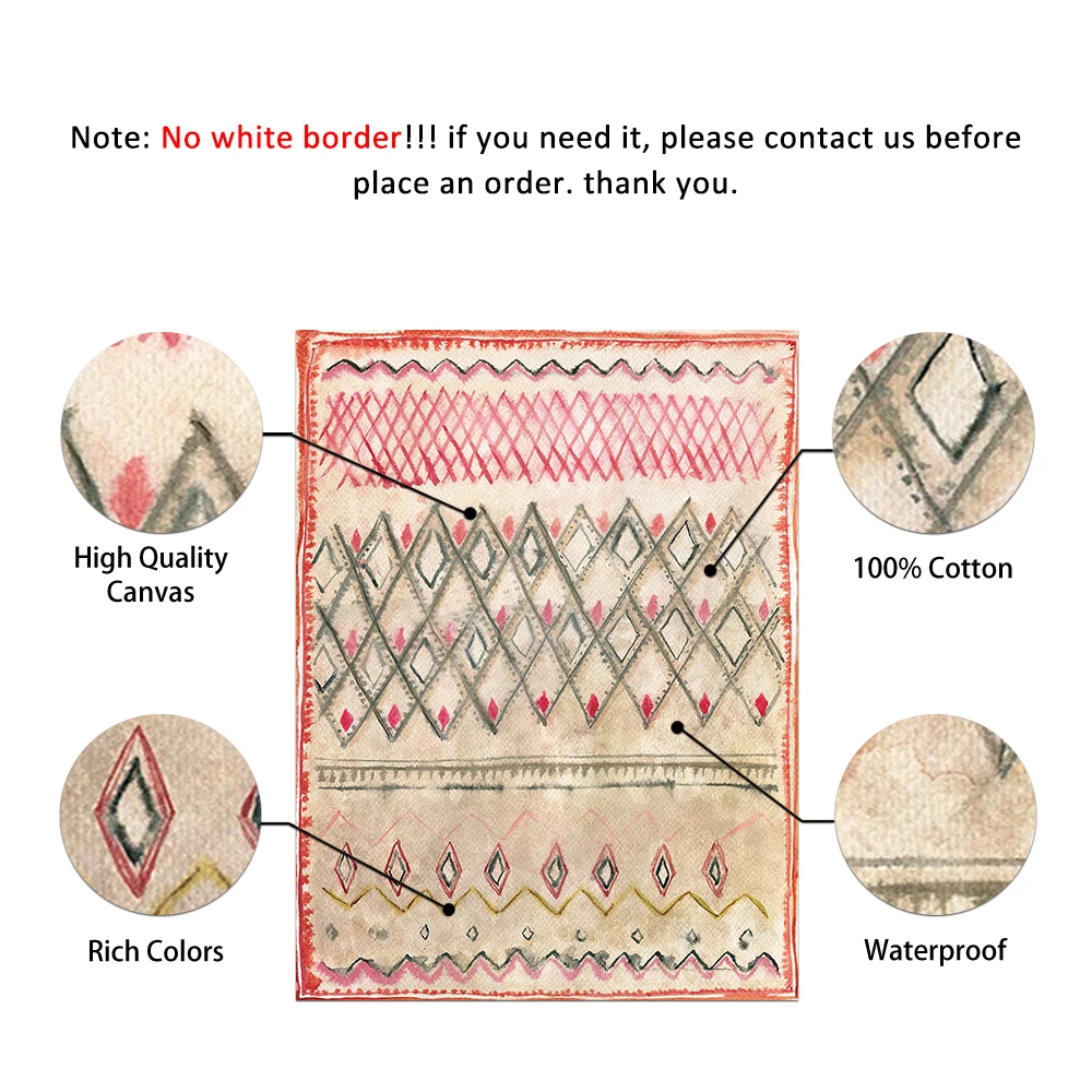 Марокканский коврик, художественные принты, Настенный декор в стиле бохо, нейтральный плакат, Геометрическая текстура, холщовая живопись, Современная богемная домашняя Настенная картина