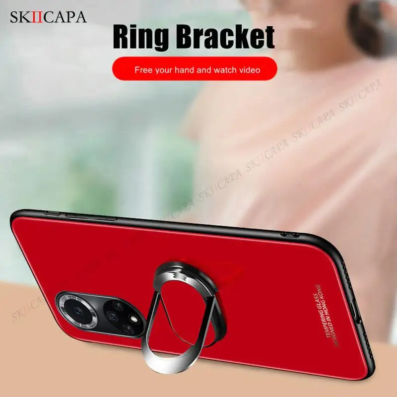 Чехол для телефона Huawei nova 9 Pro из закаленного стекла с кольцом и подставкой для Nova 8i 8SE Nova 8 7 Pro 7i, чехол для шнура с ремешком и ожерельем