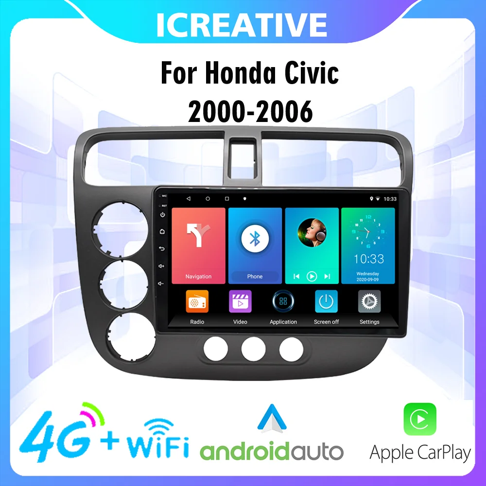 Автомагнитола 4G Carplay, мультимедийный видеоплеер для Honda Civic 2000-2006, Android-навигация, GPS, 2 Din, Авторадио, головное устройство