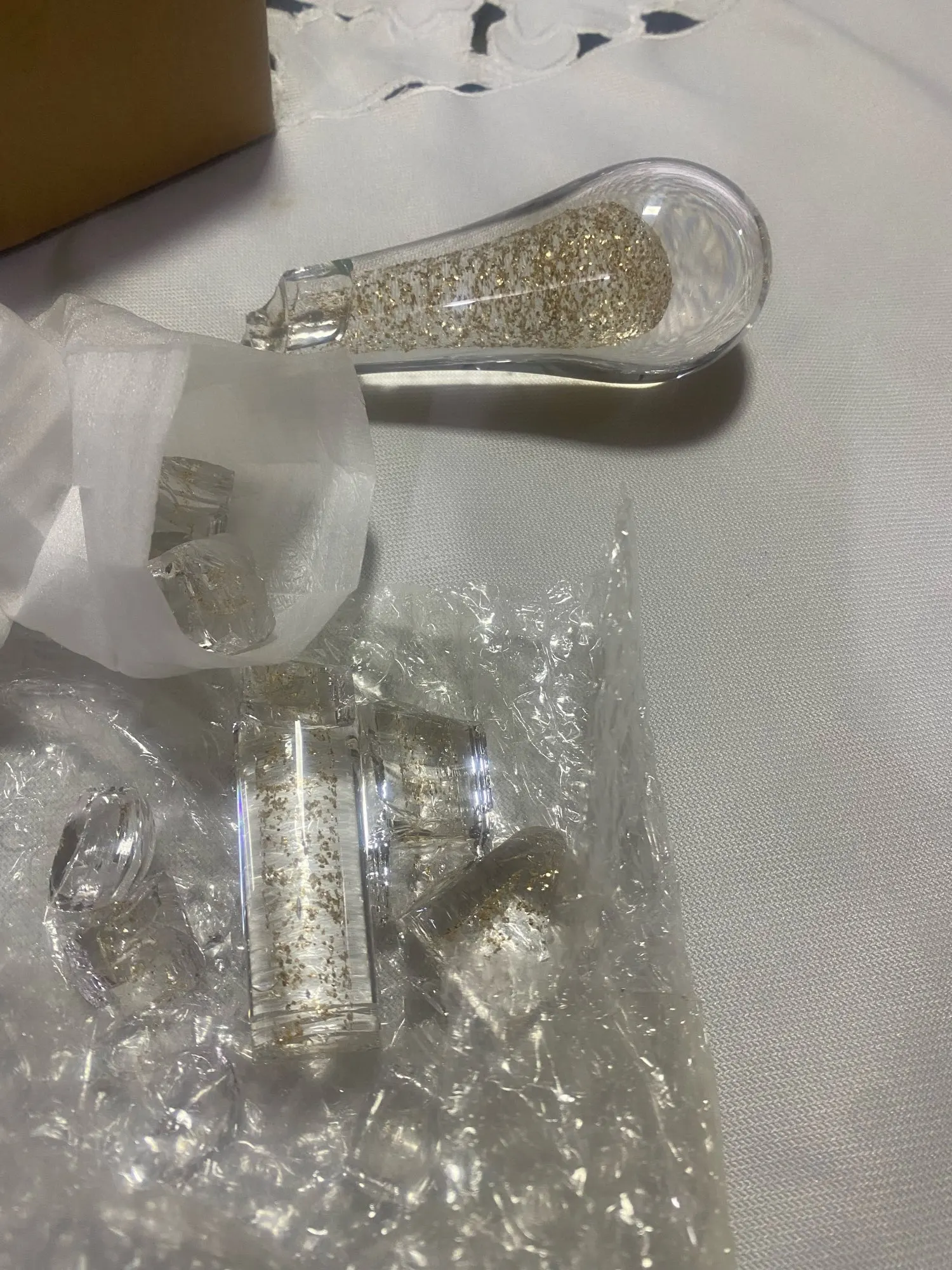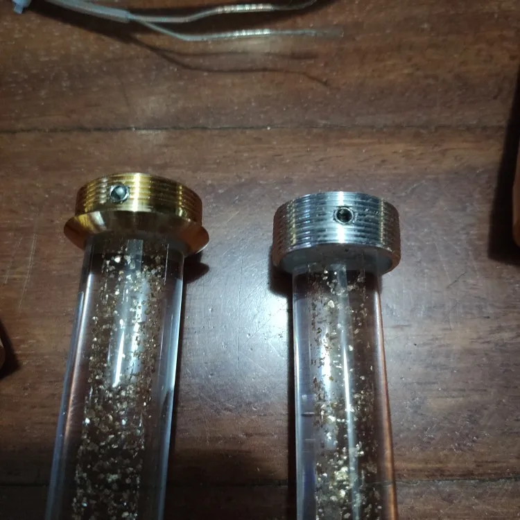 Я заказал одну лампу с золотыми хлопьями в стекле. Пришло хорошо упакованным, и на лампу красиво смотреть. Конструкция, которая удерживает стеклянный корпус, довольно хрупкая. Стекло удерживается двумя винтами толкателей в тонком алюминиевом резьбовом кольце. Мне пришлось отрегулировать толкатели, так как они слишком сильно торчали, и алюминиевое кольцо не вкручивается полностью в патрон лампы. Это хрупкая часть конструкции, так как толкатели выпадут, если ввинтить чуть-чуть слишком сильно, и стеклянный корпус выпадет из патрона лампы. Это случилось со мной, и, к счастью, стекло не разбилось. Постараюсь закрепить лишнее лентой цвета сома. Алюминиевое кольцо должно иметь большую толщину стенки, чтобы толкатели оставались более надежными. В противном случае это хороший продукт, который стоит своих денег.